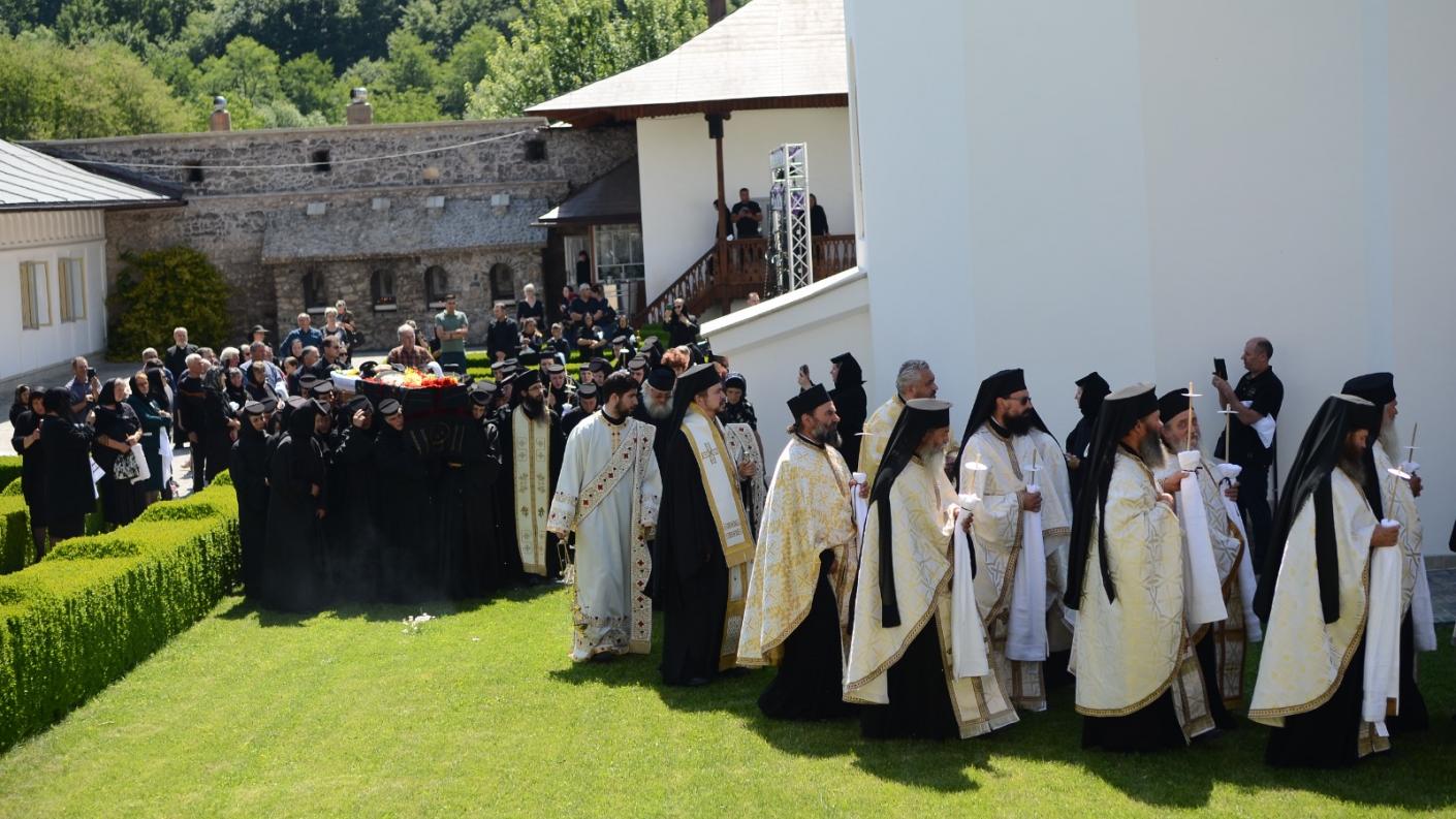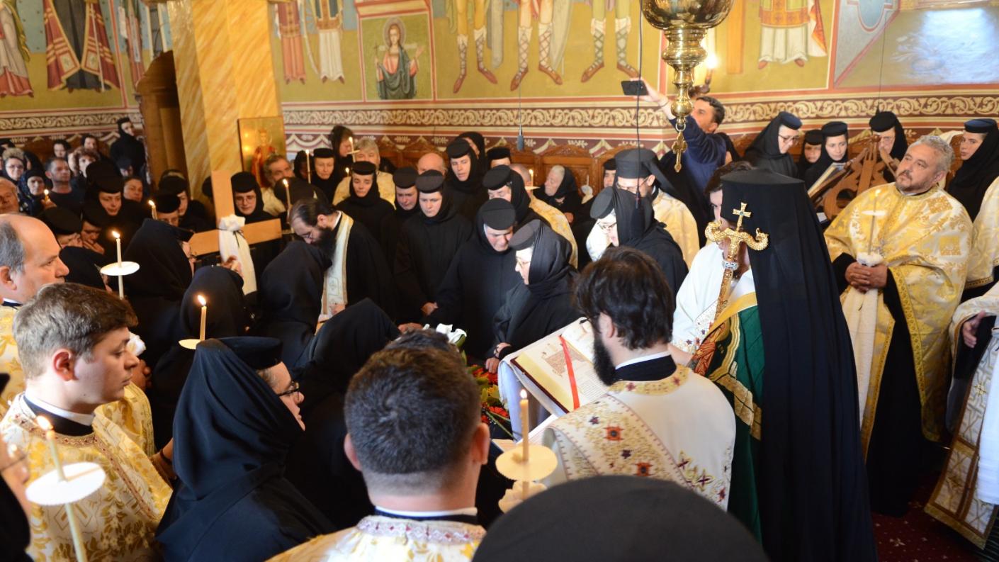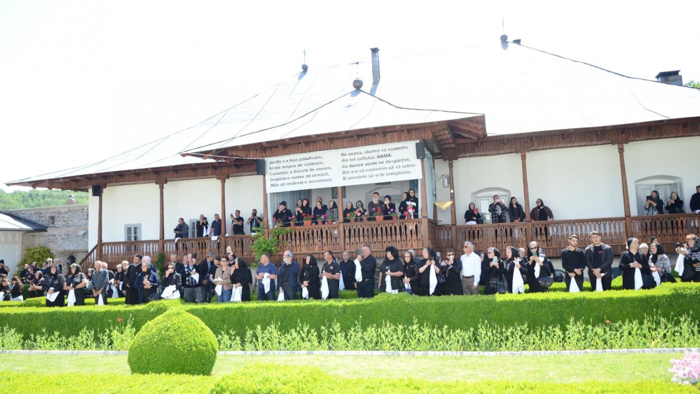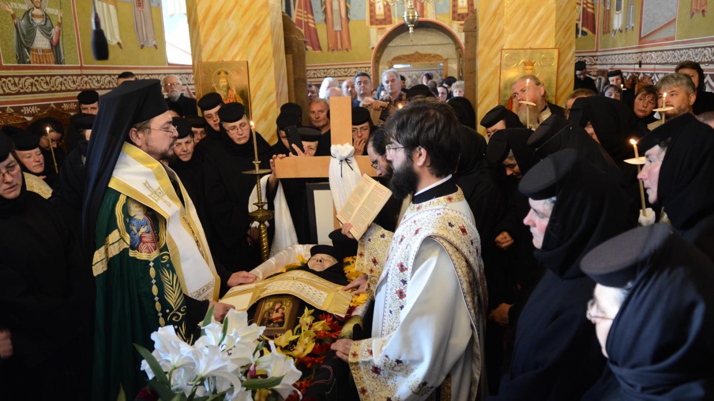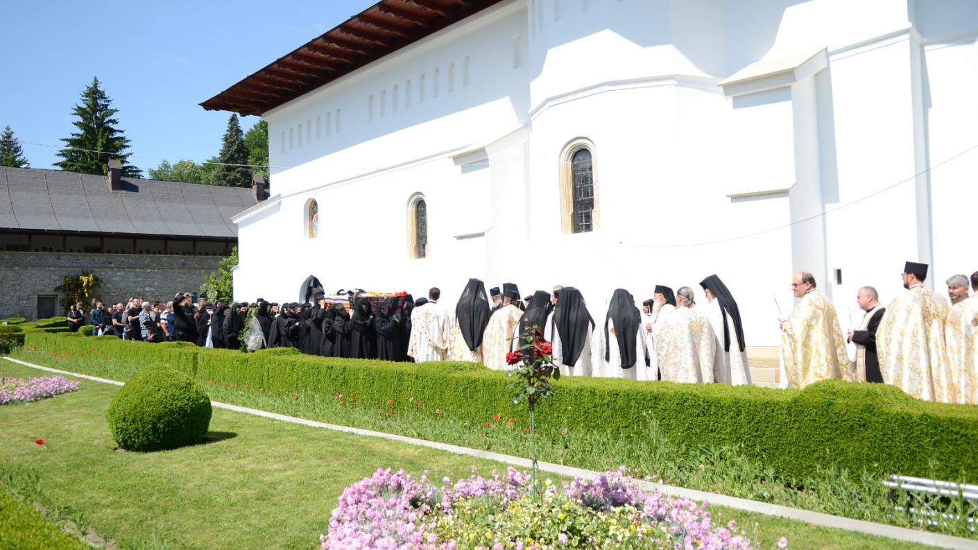Dimineață a fost săvârșită Sfânta Liturghie, după care a urmat rânduiala înmormântării monahilor, în cadrul căreia au fost înălțate rugăciuni pentru iertarea păcatelor celei care s-a ostenit ani la rândul pentru reclădirea, înfrumusețarea și extinderea mănăstirii, dar și pentru creșterea duhovnicească a maicilor pe care cu deosebită dragoste le-a condus.