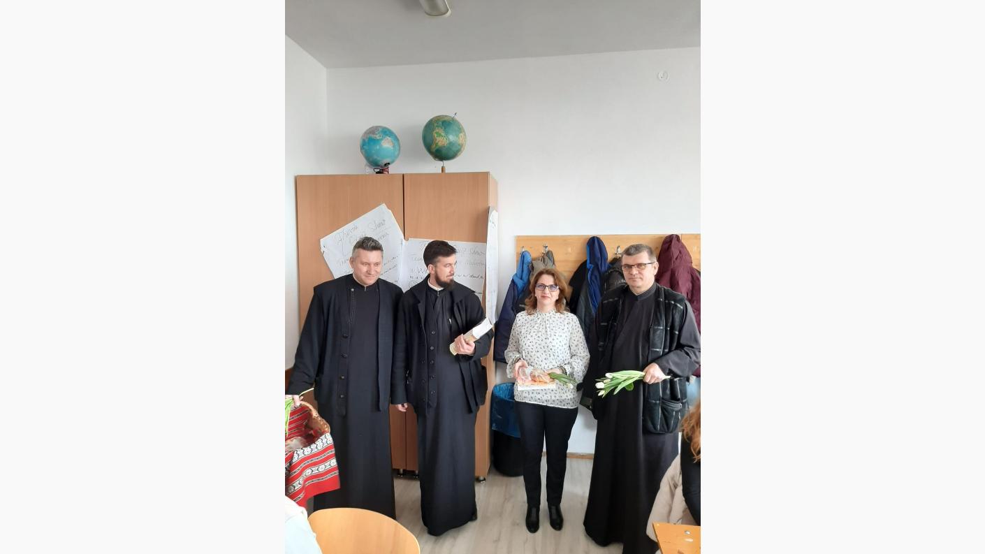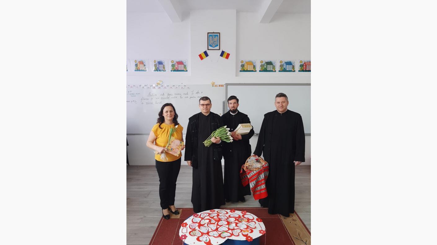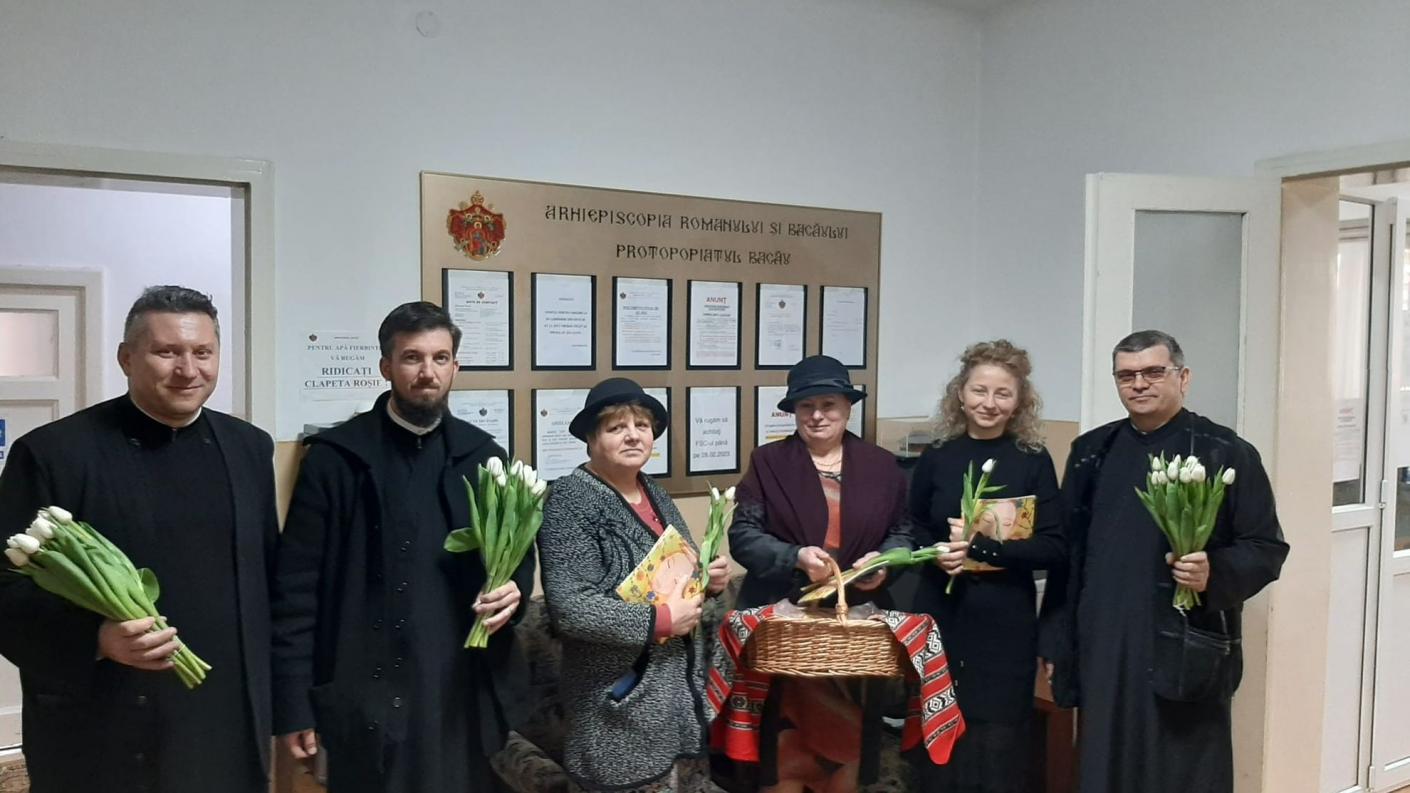 Încă de la primele ore ale zilei de 8 Martie, preoţii Parohiei „Sf. Trei Ierarhi” Bacău, părintele paroh Aurel Cîrlan, împreună cu preoţii slujitori Marian Gliga şi Mihai-Flavius Balaban, au adus un prinos de cinstire femeilor şi mamelor, împărţind flori şi produse de patiserie de la brutăria „Betleem” din incinta Centrului eparhial Roman, tuturor doamnelor şi domnişoarelor profesoare care îşi desfăşoară activitatea la Şcoala Gimnazială „Mihai Drăgan” Bacău, precum şi tuturor angajatelor Protoieriei Bacău.