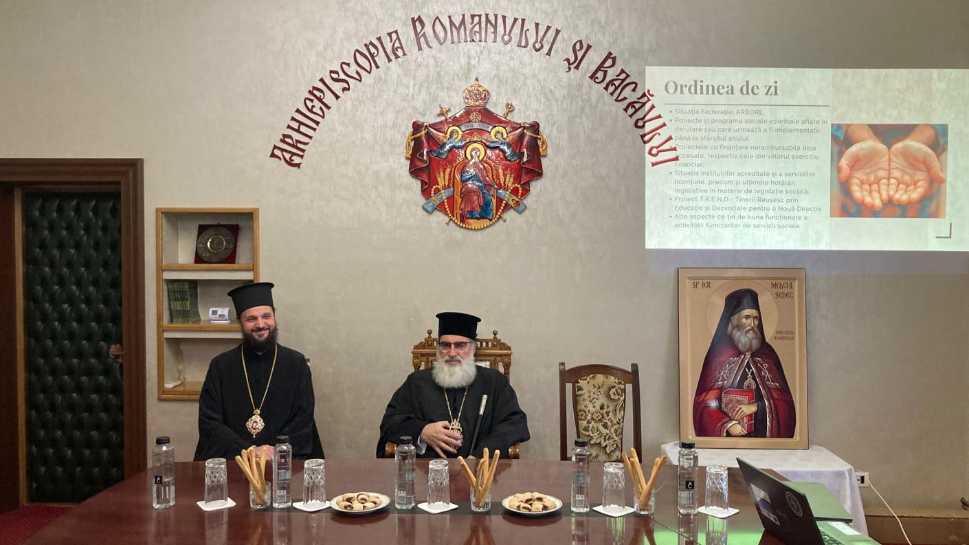 Întâlnirea a debutat în prezența și cu binecuvântarea Înaltpreasfințitului Părinte Ioachim, Arhiepiscopul Romanului și Bacăului, și a Preasfințitului Părinte Teofil Trotușanul, Episcop-vicar. Atmosfera a fost una caldă și prietenoasă, prilej pentru prezentarea participanților și a activităților esențiale desfășurate de instituțiile pe care le reprezintă, precum și pentru împărtășirea realizărilor și a provocărilor întâmpinate. Totodată, a fost și prima ocazie pentru participanți de a se întâlni cu Preasfințitul Părinte Teofil în această formulă de lucru, de la hirotonia sa întru arhiereu.