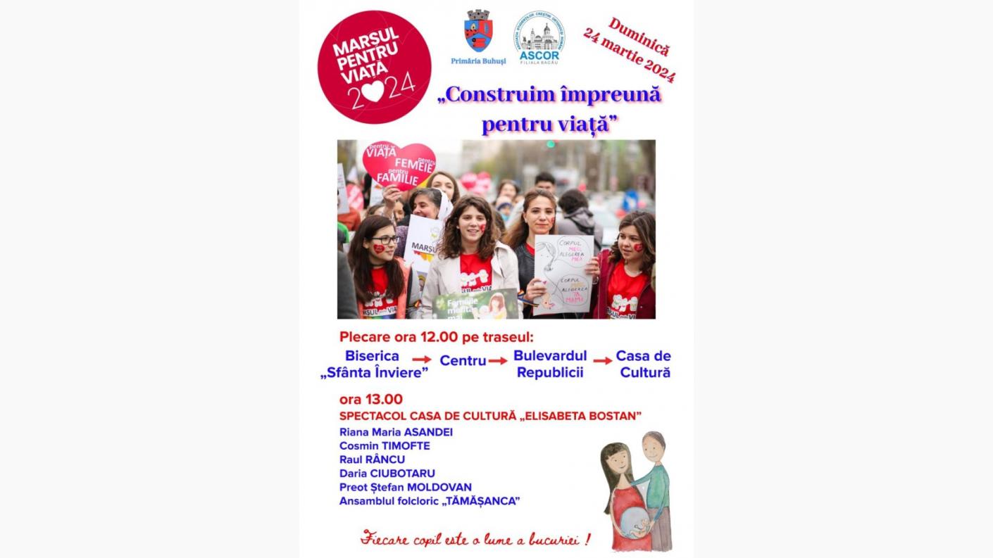 Asociația Studenților Creștin Ortodocși din România (ASCOR) – filiala Bacău invită băcăuanii de toate vârstele să ia parte la „Marșul pentru Viață”, care va avea loc duminică, 24 martie, în orașele Bacău și Buhuși. Inițiativa tinerilor este susținută de către Unitățile Administrativ Teritoriale din ambele orașe, Protoieria Bacău și bisericile din cuprinsul ei.