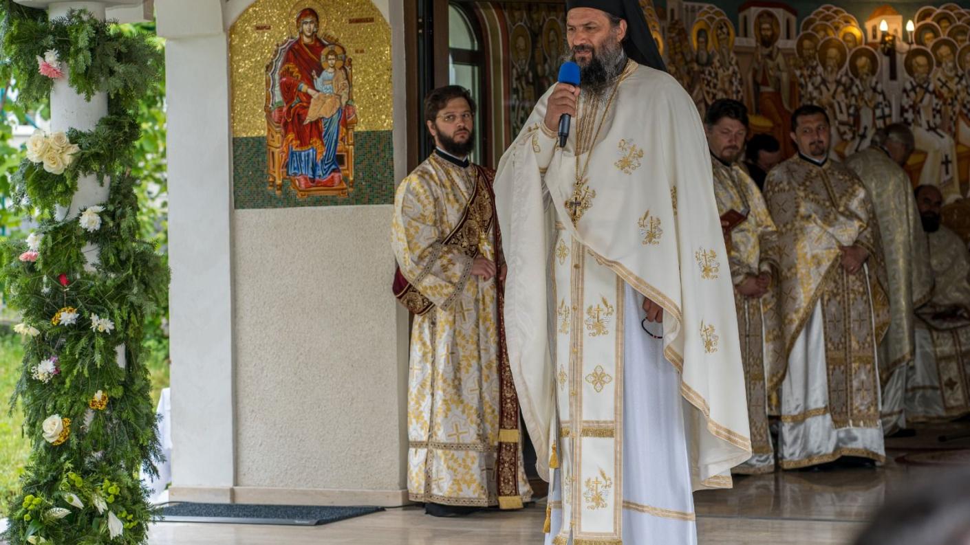 Zilele acestea au fost nespus de triste pentru noi. Din toate părțile am primit cuvinte de îmbărbătare la Centrul eparhial pentru faptul că mulți au fost afectați de trecerea din această viață a acestui părinte minunat care a început viața întru Hristos în această mănăstire, pe care o recunoaștem a fi una dintre cele mai duhovnicești oaze de spiritualitate din întreaga eparhie. Moartea părintelui este o mare pierdere din punct de vedere uman, dar Dumnezeu are viețile noastre înscrise din eternitate și știe ce este mai bine pentru fiecare dintre noi. A suferit în taină, pentru că era un om introvertit. El nu ascundea munca sau ascultarea lui, dar ascundea suferința lui, durerea pe care doar Dumnezeu o știa și Care a rânduit ca Părintele Serafim să plece din această lume tocmai când îi făcea pomenirea de un an de la trecerea în veșnicia lui Dumnezeu părintelui său duhovnic, Emilian Panait. Pentru faptul că Părintele Serafim a fost iubitor de sfinți, Dumnezeu l-a chemat la ceruri tocmai în această duminică închinată tuturor sfinților. El a fost ca o floare pe care Dumnezeu a rupt-o din această lume pentru a o așeza în Grădina Raiului. Au fost înălțate astăzi atâtea rugăciuni care au încununat capul părintelui de pe catafalc și credem că această coroană va fi așezată de Dumnezeu în cerul pe care părintele l-a iubit atât de mult. Toată viața sa s-a străduit să se uite pe sine pentru fiii săi duhovnicești, pentru eprahia în care avut responsabilități, pentru ucenicii lui, pentru biserică.