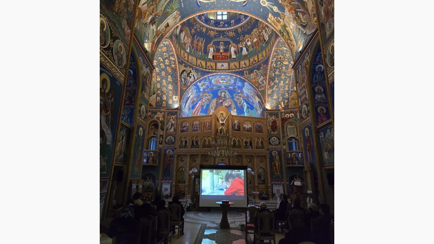 După prezentarea power-point, a fot vizionat documentarul „Educație și filantropie. Fundația Melchisedec Ștefănescu a Arhiepiscopiei Romanului și Bacăului”, realizat de Trinitas TV.