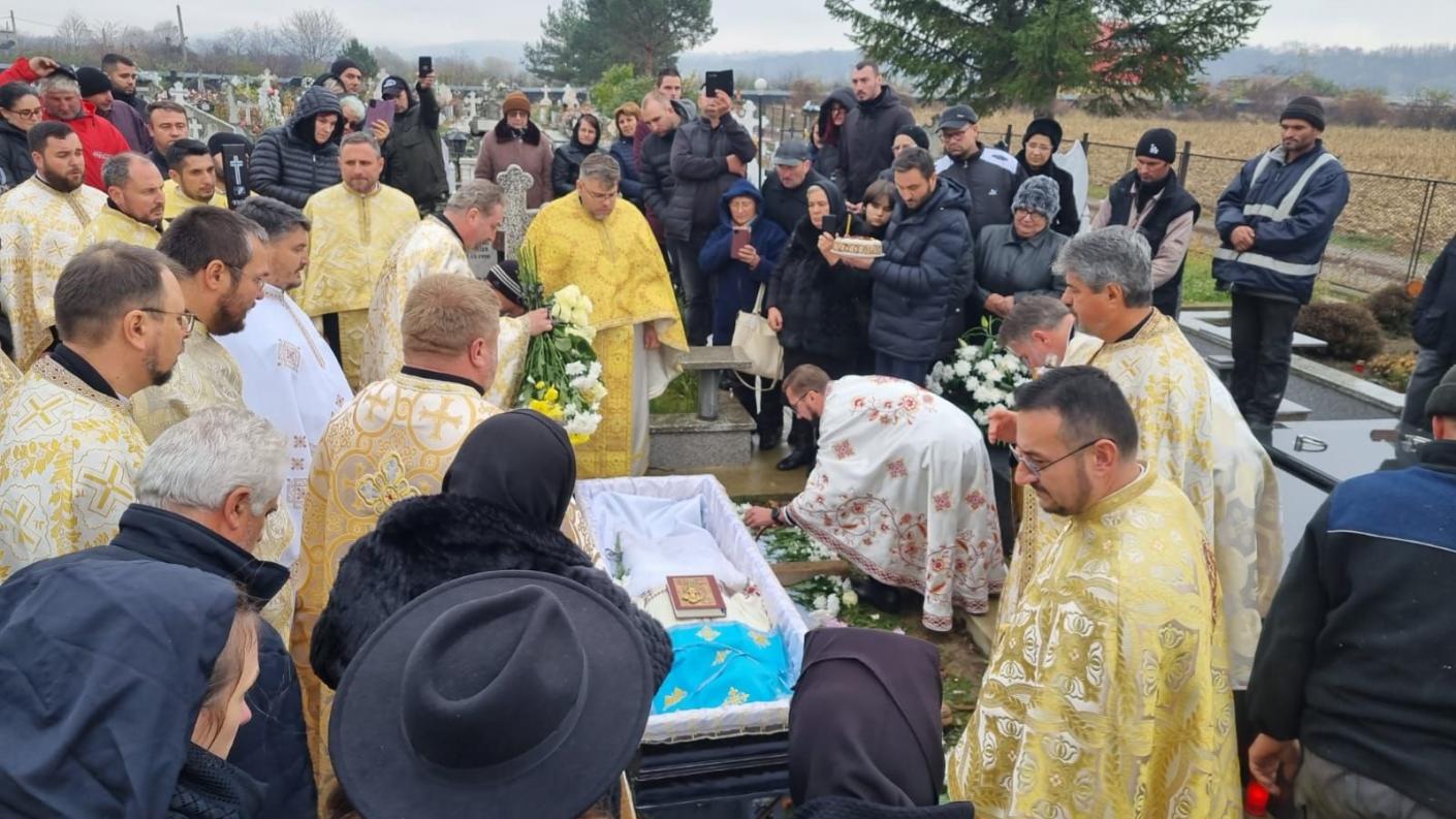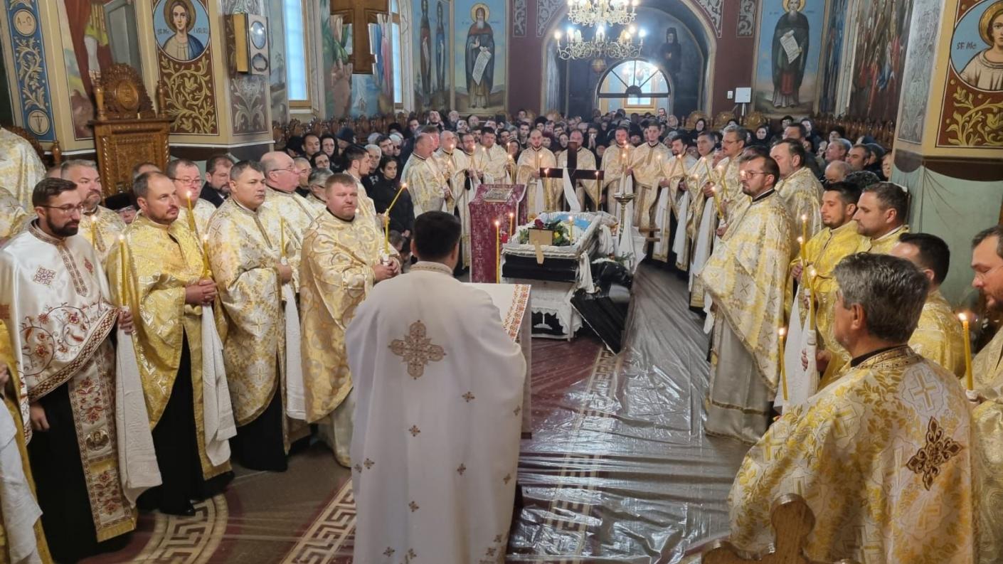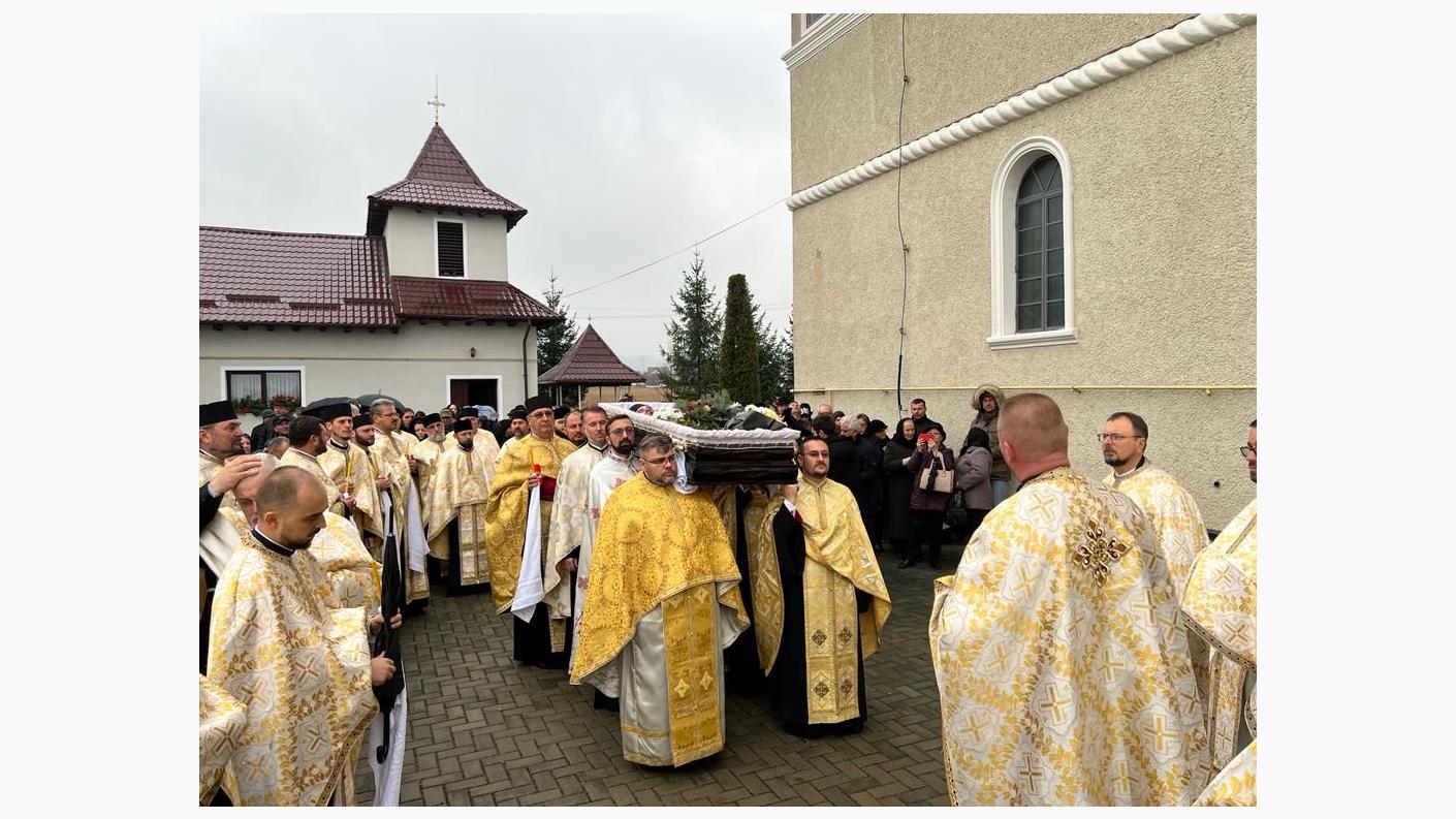 După cuvintele rostite, în glasul cântării pascale Hristos a Înviat! și al clopotelor bisericii, foștii colegi și prieteni ai părintelui au purtat pe umeri sicriul cu trupul neînsuflețit, urmați de soborul de preoți, precum și de mulțimea de credincioși, apoi a fost așezat în mormântul care primește ce este al pământului, iar sufletul vrednicului slujitor al Domnului nădăjduim, credem și mărturisim că a fost primit în slujirea veșnică a Liturghiei Cerești.