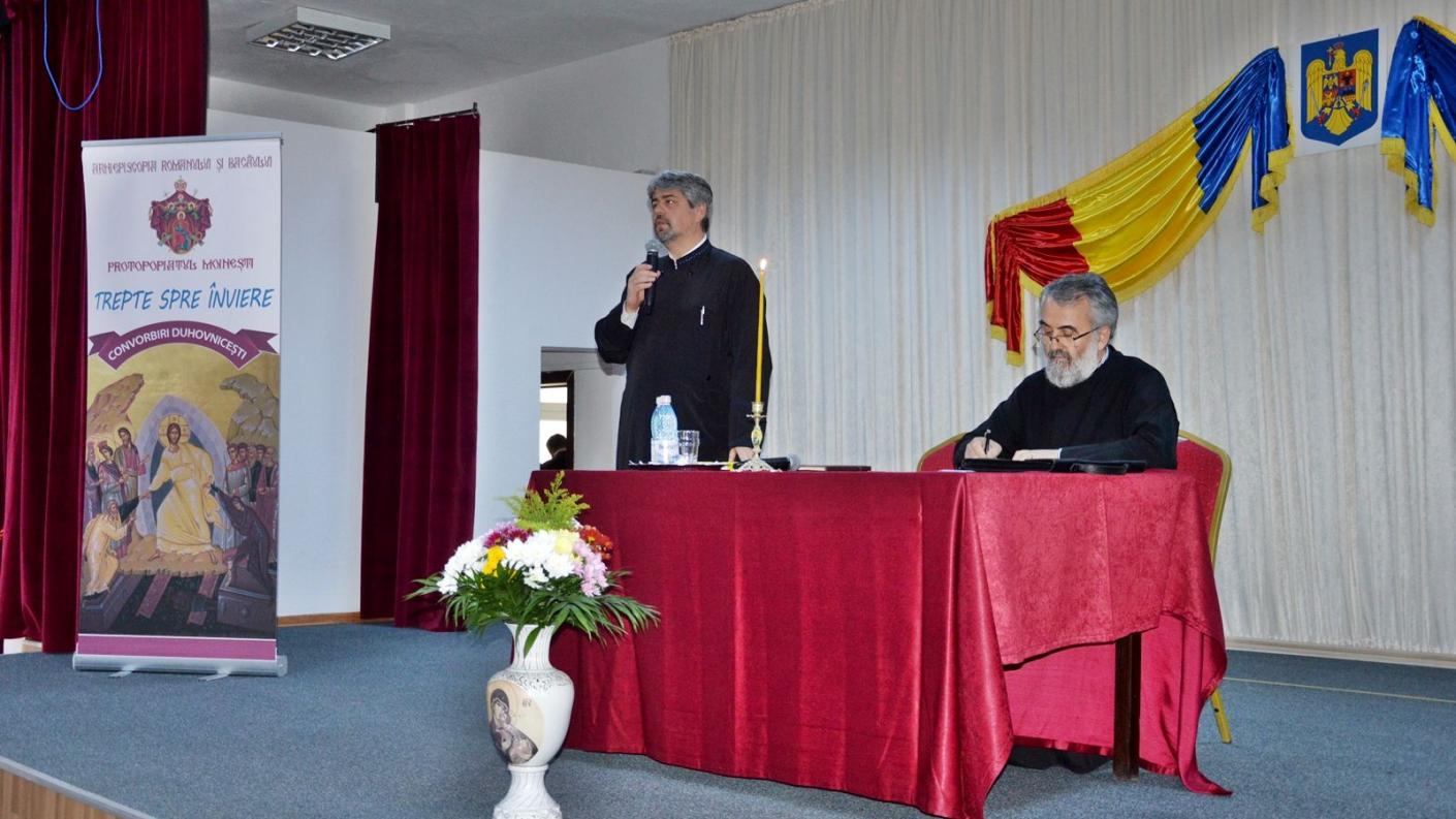 Serile convorbirilor duhovnicești întitulate „Trepte spre Înviere” în Protopopiatul Moinești au continuat duminică 7 aprilie 2019 în Sala de Festivități a Primăriei Moinești.