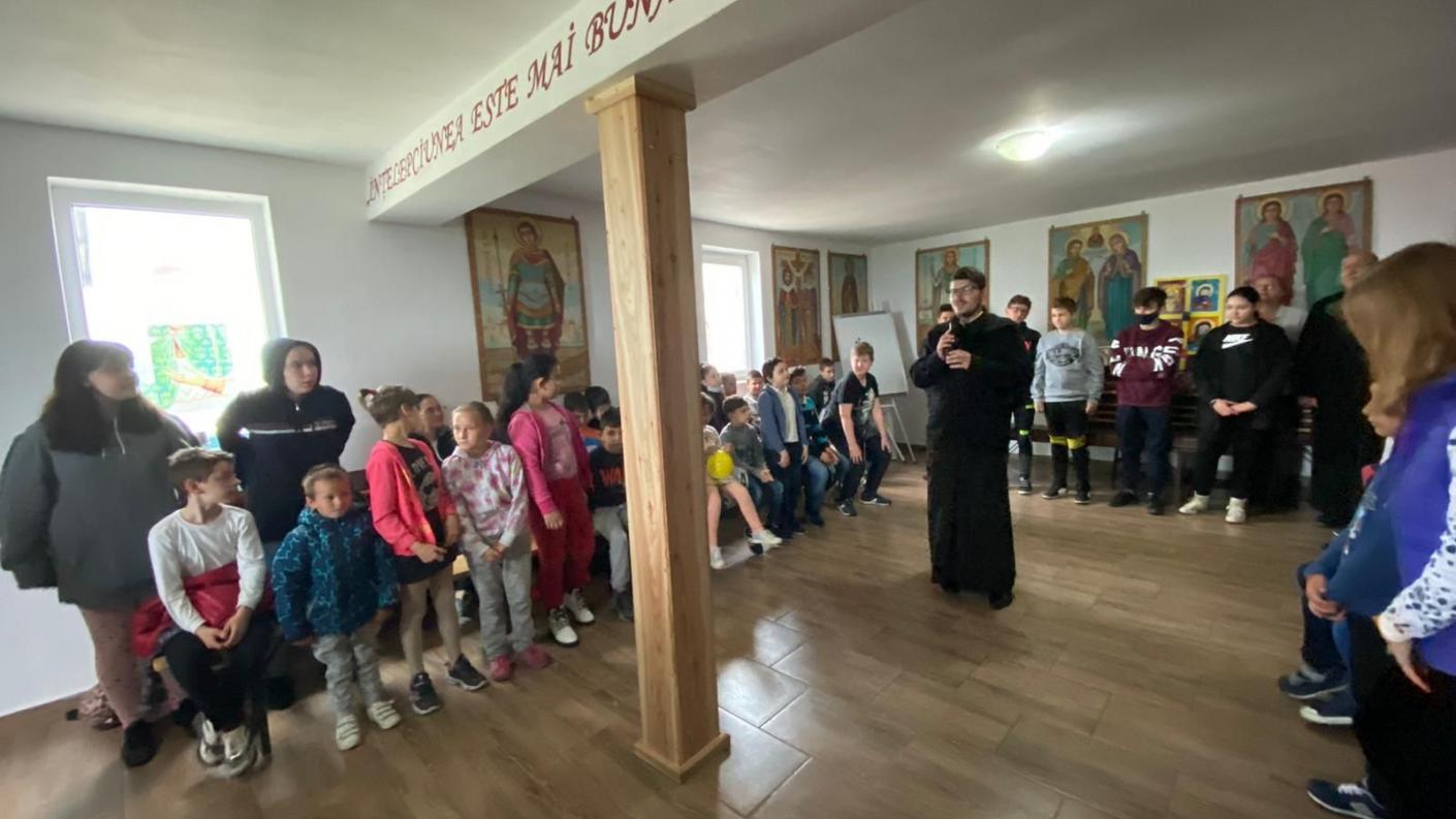 La sfârșitul activității, copiii au primit o gustare, prăjituri și suc, alături de un cuvânt bun de învățătură din partea părintelui.