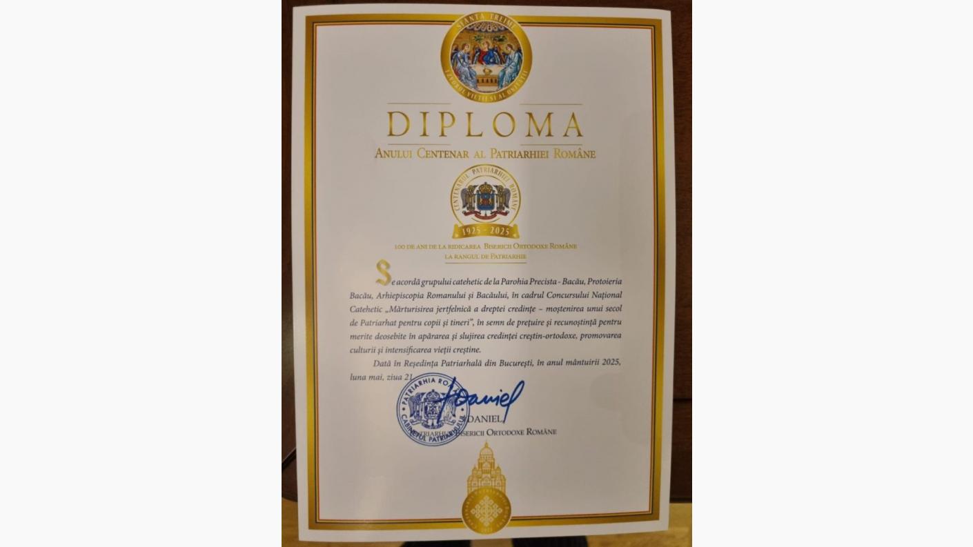 În seara zilei de marți, 20 mai 2025, la Centrul pentru formare continuă „Dumitru Stăniloae” din cadrul Patriarhiei Române, a avut loc într-un cadrul festiv, premierea grupurilor catehetice câștigătoare la nivel național. Din partea Arhiepiscopiei Romanului și Bacăului, cu binecuvântarea Înaltpreasfințitului Părinte Ioachim, a fost prezentă Parohia Precista Bacău, reprezentată de preotul paroh Mihail Tomozei, care a căștigat premiul I la nivel eparhial, cu proiectul „Mari duhovnici români în secolul XX”.