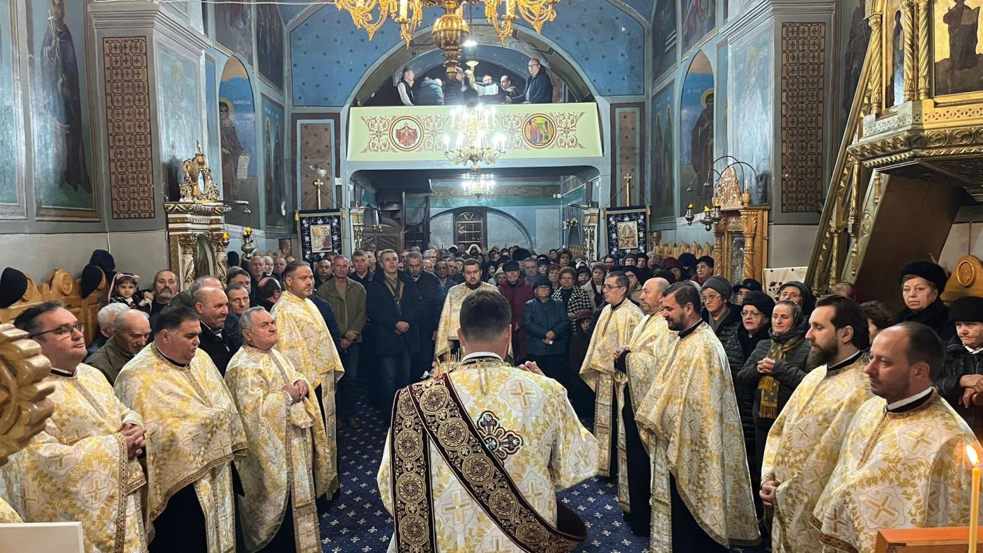 În prezența delegatului chiriarhului Romanului și Bacăului, comunitatea parohiei s-a adunat în rugăciune la slujba vecerniei praznicului Intrării Maicii Domnului în Biserică alături de un sobor numeros format din părinți slujitori ai altarelor din cetatea mușatină.