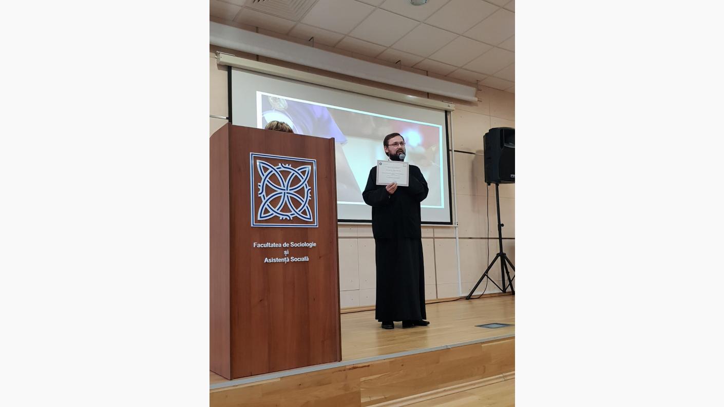 Părintele Ilarion Mâță, paroh al Parohiei ortodoxe Hârja, com. Oituz, Protopopiatul Onești, aflată între furnizorii de servicii sociale care au fost desemnați câștigători, a participat astăzi, 13 decembrie 2018, la festivitatea de premiere organizată la București.
