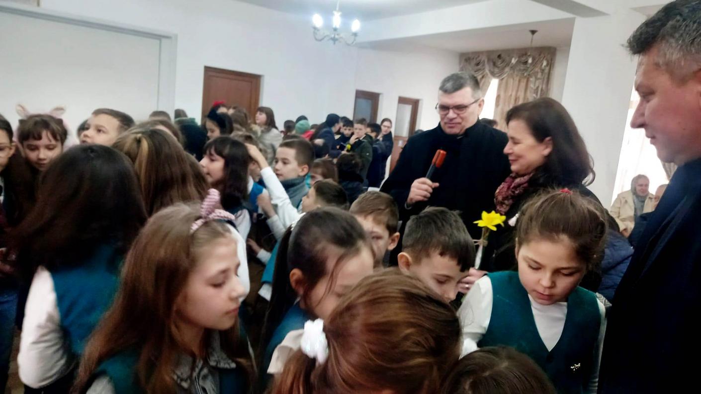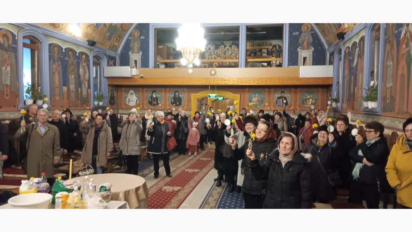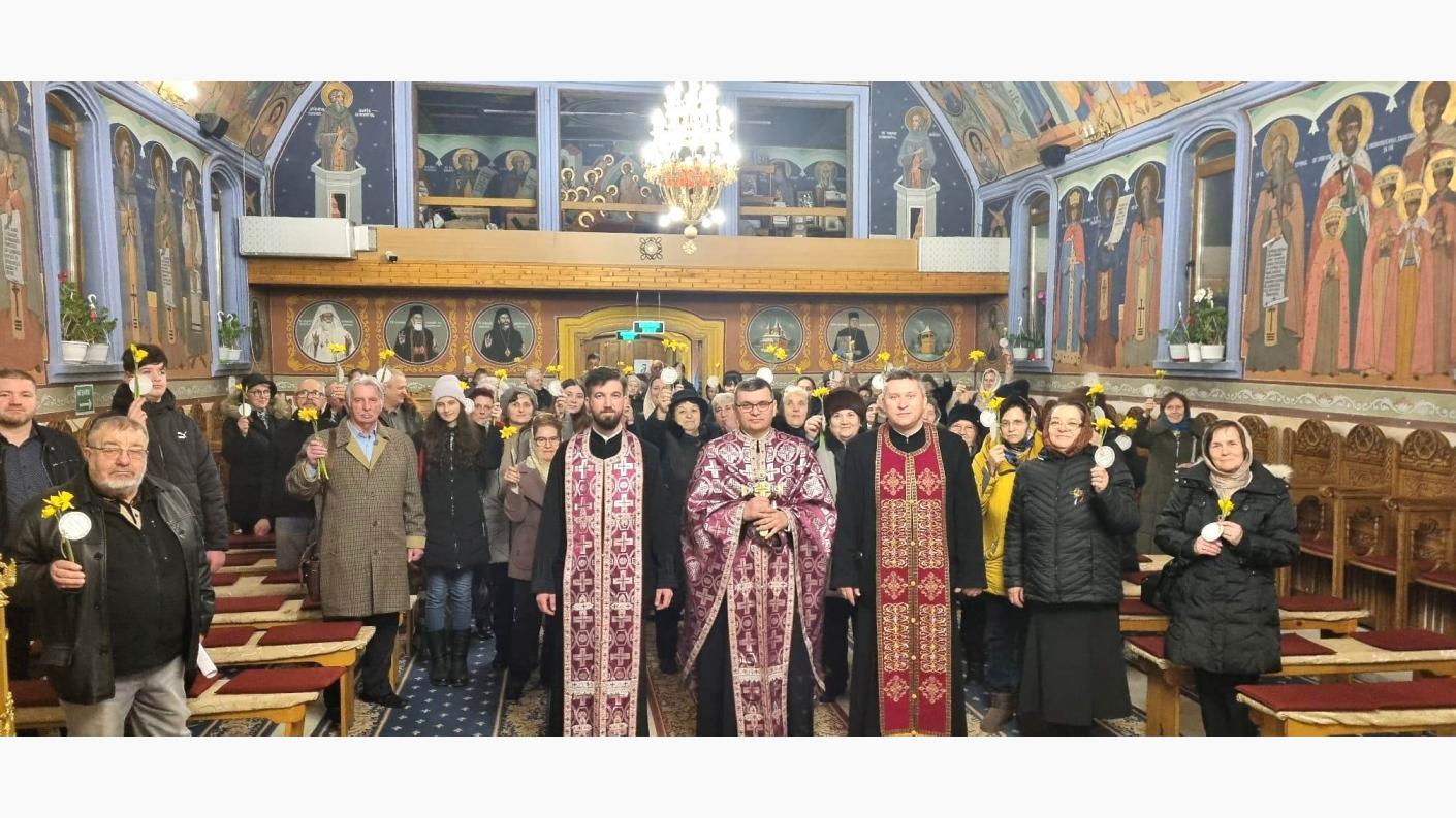 Preoţii parohiei au mai împărţit flori tuturor doamnelor şi domnişoarele care au participat vineri seara la Taina Sfântului Maslu dar şi celor care au participat duminică la Sfânta Liturghie, continuând astfel bucuria de a dărui şi materializând îndemnul pe care Înaltpreasfinţitul Părinte Ioachim îl face în poemul „Inimă de mamă”, cel care a fost dăruit împreună cu florile: „Azi, în prag de primăvară, fiecare puișor / Să ofere mamei sale inima, ca mărțișor. / Iar pe pieptul ei de mamă, pe lângă doi motocei, / Să așeze, din iubire, și-un buchet de ghiocei.”