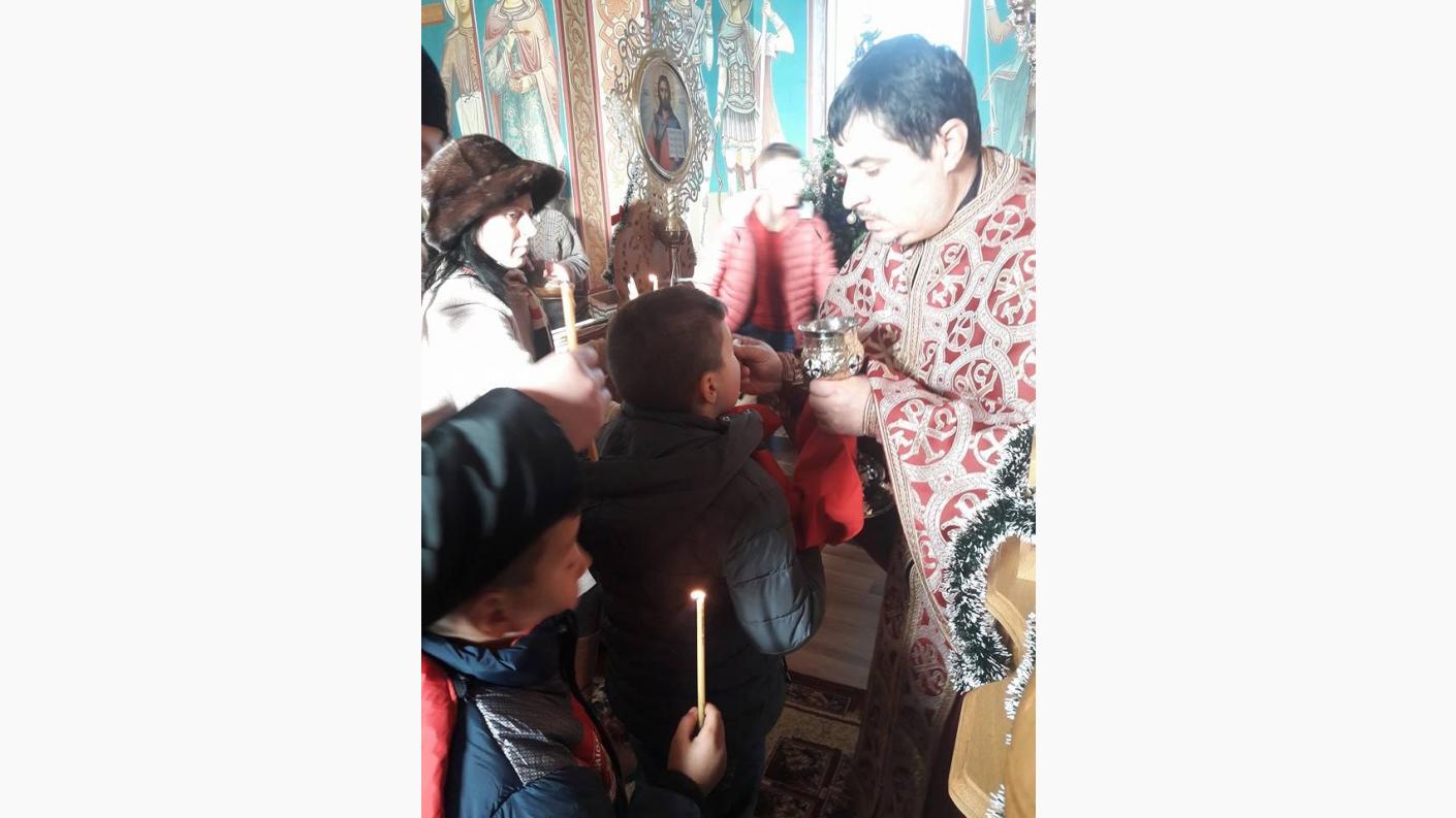 Cu binecuvântarea Înaltpreasfințitului Părinte Arhiepiscop Ioachim, duminică, 24 decembrie 2017, în Ajunul slăvitului Praznic al Nașterii Mântuitorului nostru Iisus Hristos, în Parohia Turluianu peste 150 de copii au participat la Sfânta și Dumnezeiasca Liturghie alături de părinții și bunicii lor. La momentul cuvenit din slujbă toți micuții și tinerii enoriași au fost împărtășiți cu Trupul și Sângele Domnului de către părintele paroh Daniel Popa.