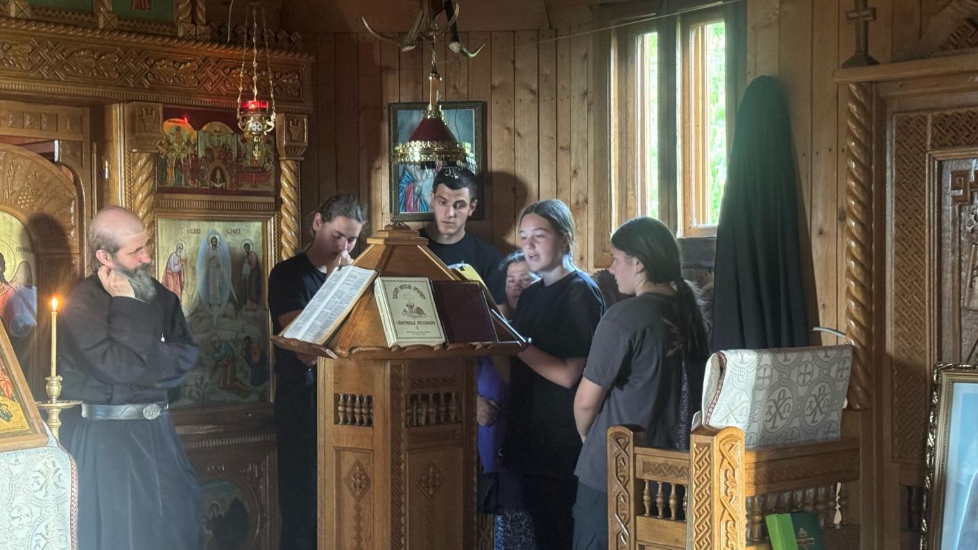 Ajunși la Schitul Schimbarea la Față, au fost întâmpinați cu căldură de obștea mănăstirii și au participat la slujba de priveghere, bucurându-se de liniștea și rugăciunea muntelui. După cină, tinerii s-au oferit să ajute la strânsul mesei, un gest simplu, dar plin de respect și recunoștință.