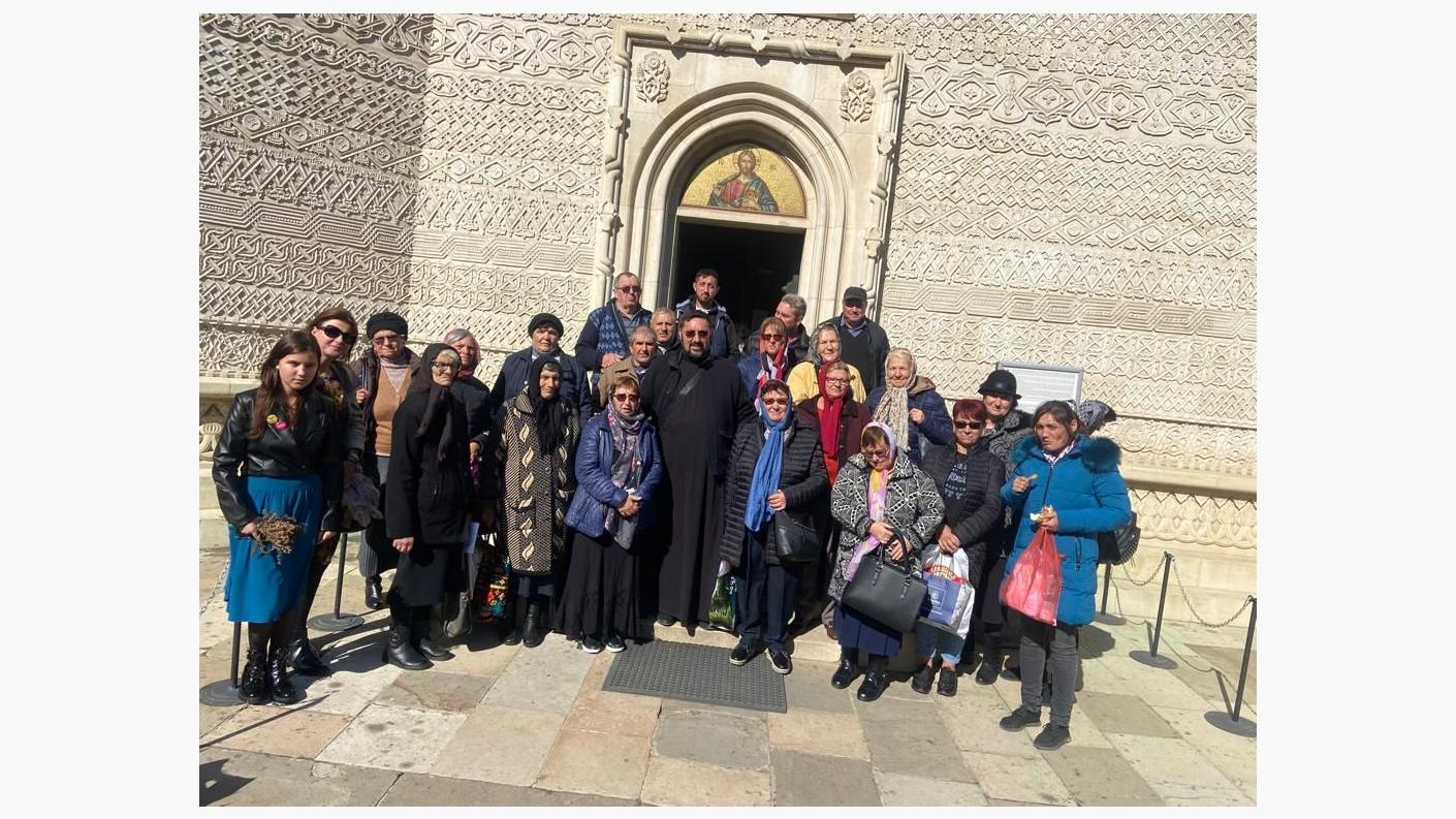 În dimineaţa zilei de 11 octombrie 2023, grupul format din 30 de pelerini a poposit mai întâi la Roman, în cetate, unde s-au închinat la racla cu Sfinte Moaște din Catedrala Arhiepiscopală şi au ascultat cuvântul de binecuvântare şi istoricul Catedralei şi al celor 77 de ierarhi ai Romanului, prezentat într-o manieră duhovnicească de părintele arhim. Andrei Ioniţă.