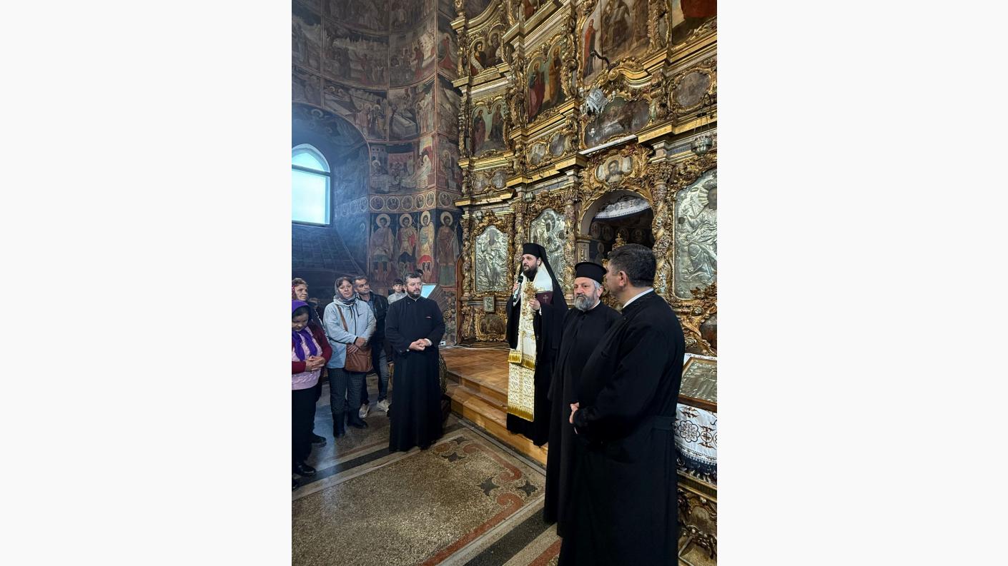 Înainte de plecare, pelerinii s-au închinat la fragmentul din moaștele Sfintei Parascheva și la celelalte sfinte odoare aflate în patrimoniul spiritual al Catedralei din Roman.