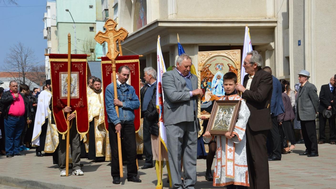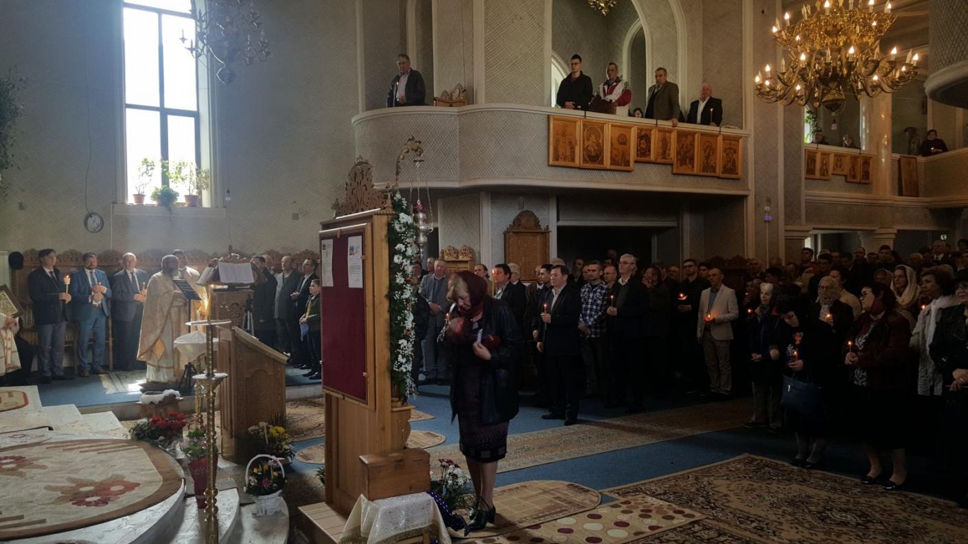 În încheierea cuvântului, a îndemnat pe toți cei prezenți să meargă împreună pe ”Calea Luminii” ca mărturisitori ai Lui Hristos, spre Biserica Sfântul Gheorghe, unde s-a înălțat rugăciune de mulțumire pentru toate, iar pentru că aici se află și cimitirul orașului, pelerinii au aprins căte o lumânare ca semn al credinței în Învierea Domnului nostru Iisus Hristos și în viața veșnică.