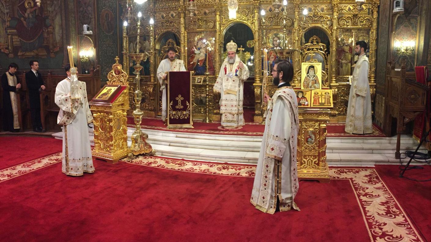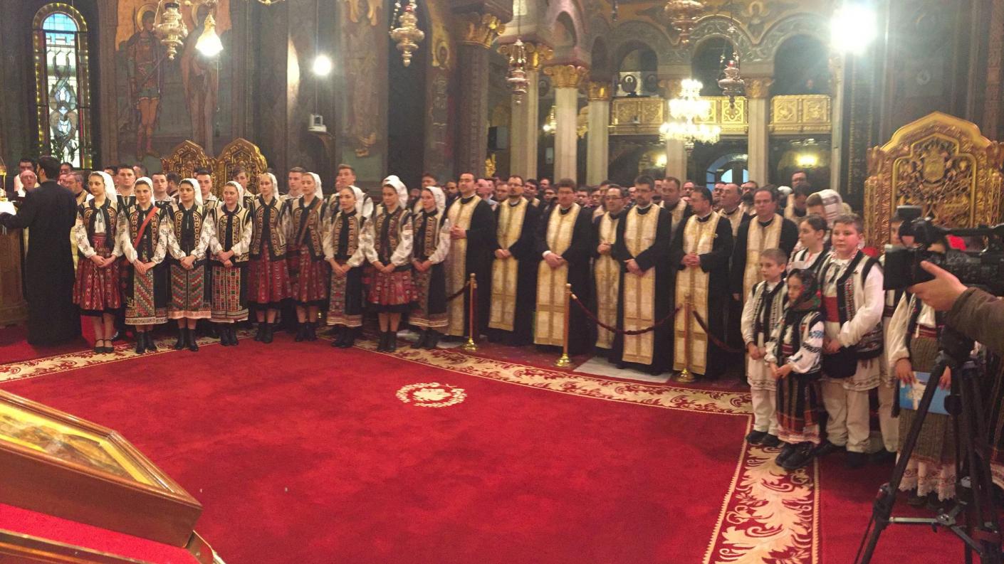 Înaltpreasfințitul Părinte Ioachim, Arhiepiscopul Romanului și Bacăului, a oficiat în această dimineață, 18 februarie 2016, slujba Sfintei Liturghii la Catedrala Patriarhală din București, fiind înconjurat de un sobor de preoți și diaconi din Eparhia Romanului şi Bacăului, la un pelerinaj în București, alături de preoți și tineri din cele șase protoierii ale Eparhiei. Acesta a debutat prin săvârșirea Sfintei Liturghii la Patriarhie, iar răspunsurile la strană au fost oferite de Corala Ierotheos a preoților din Protopopiatul Onești. La Chinonic au cântat Grupul de copii ”Meleagurile letene” din Parohia Holt (Bacău), Ansamblul ”Busuiocul” din Bacău şi Grupul de copii ”Mugurelul”.