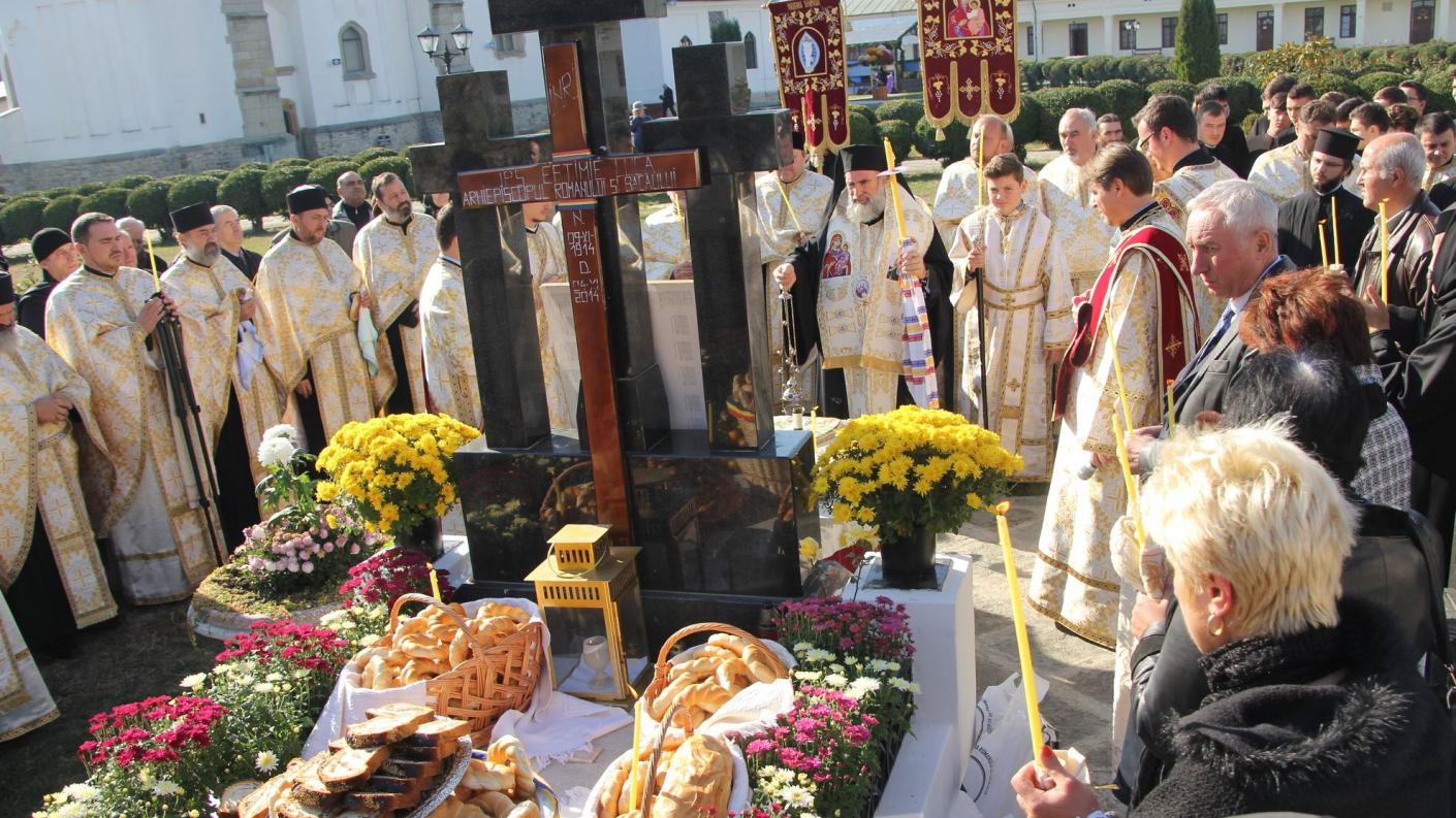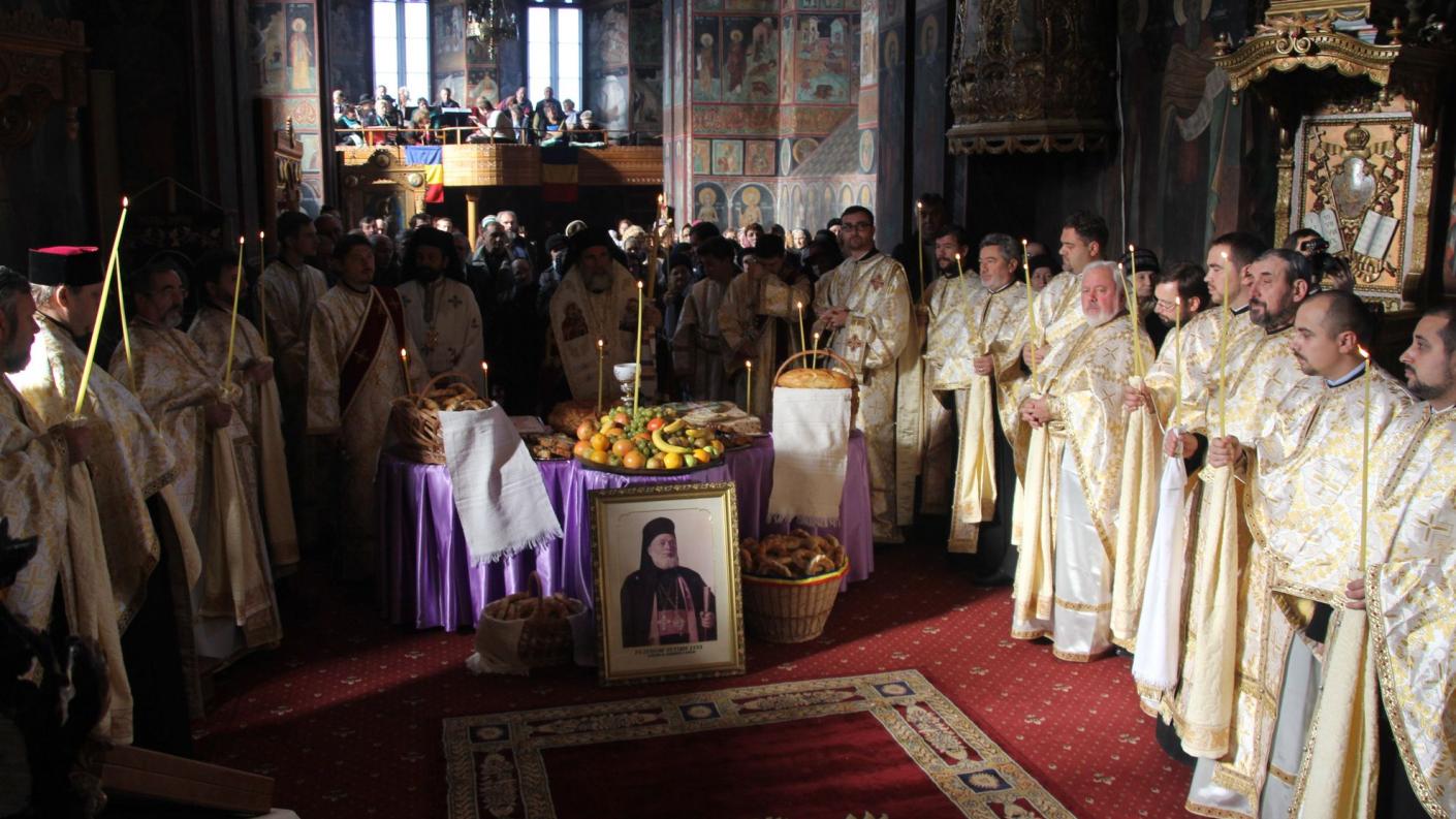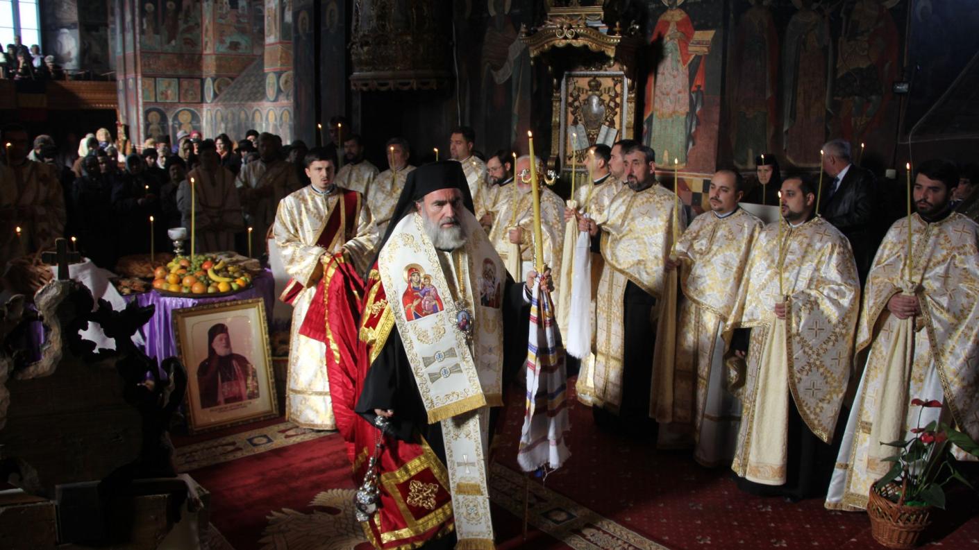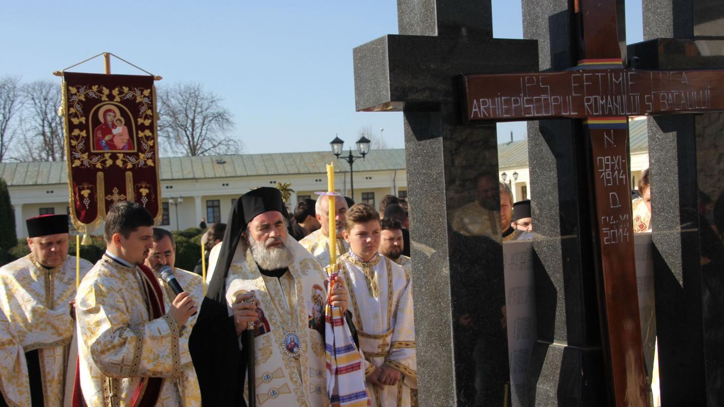 Credincioși și pelerini din cuprinsul Eparhiei Romanului și Bacăului au participat astăzi, 31 octombrie, la Dumnezeiasca Liturghie oficiată de un impresionant sobor de preoți și diaconi la Catedrala Arhiepiscopală ”Sf. Cuv. Parascheva” din Roman. Sfânta Liturghie a fost urmată de parastasul oficiat de Înaltpreasfințitul Părinte Ioachim, arhiepiscopul Romanului și Bacăului, la trecerea unui an de la mutarea la cele veșnice a vrednicului de pomenire ierarh Eftimie Luca, cel care a păstorit în această parte a Moldovei între anii 1978 - 2014. După acest moment, cei prezenți au mers în procesiune spre mormântul situat în curtea Centrului Eparhial, unde a fost oficiat un trisaghion întru pomenirea celui de-al 76 ierarh pe scaunul de la Roman. În atmosfera de rugăciune și comuniune, Înaltpreasfințitul Ioachim a evocat aspecte din viața și activitatea vlădicăi Eftimie ”cel bun”, reliefând rolul pe care acesta l-a avut în istoria multiseculară a acestei eparhii. La final, părinții slujitori ai Catedralei Arhiepiscopale au împărțit credincioșilor prezenți pachete cu alimente întru pomenirea arhipăstorului Eftimie Luca.