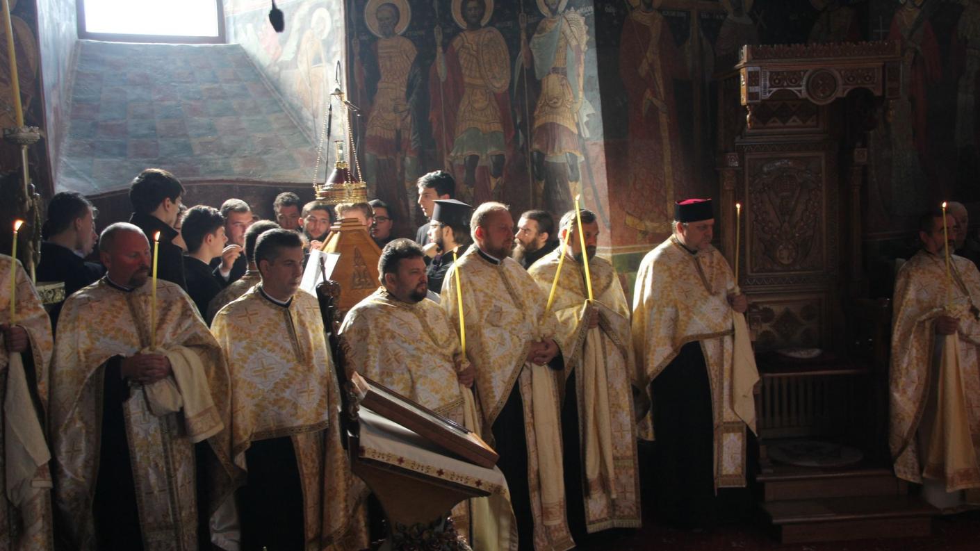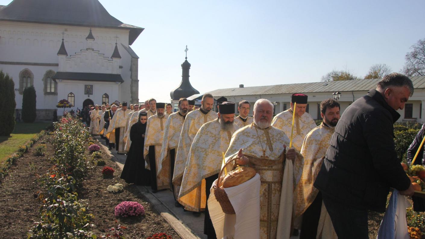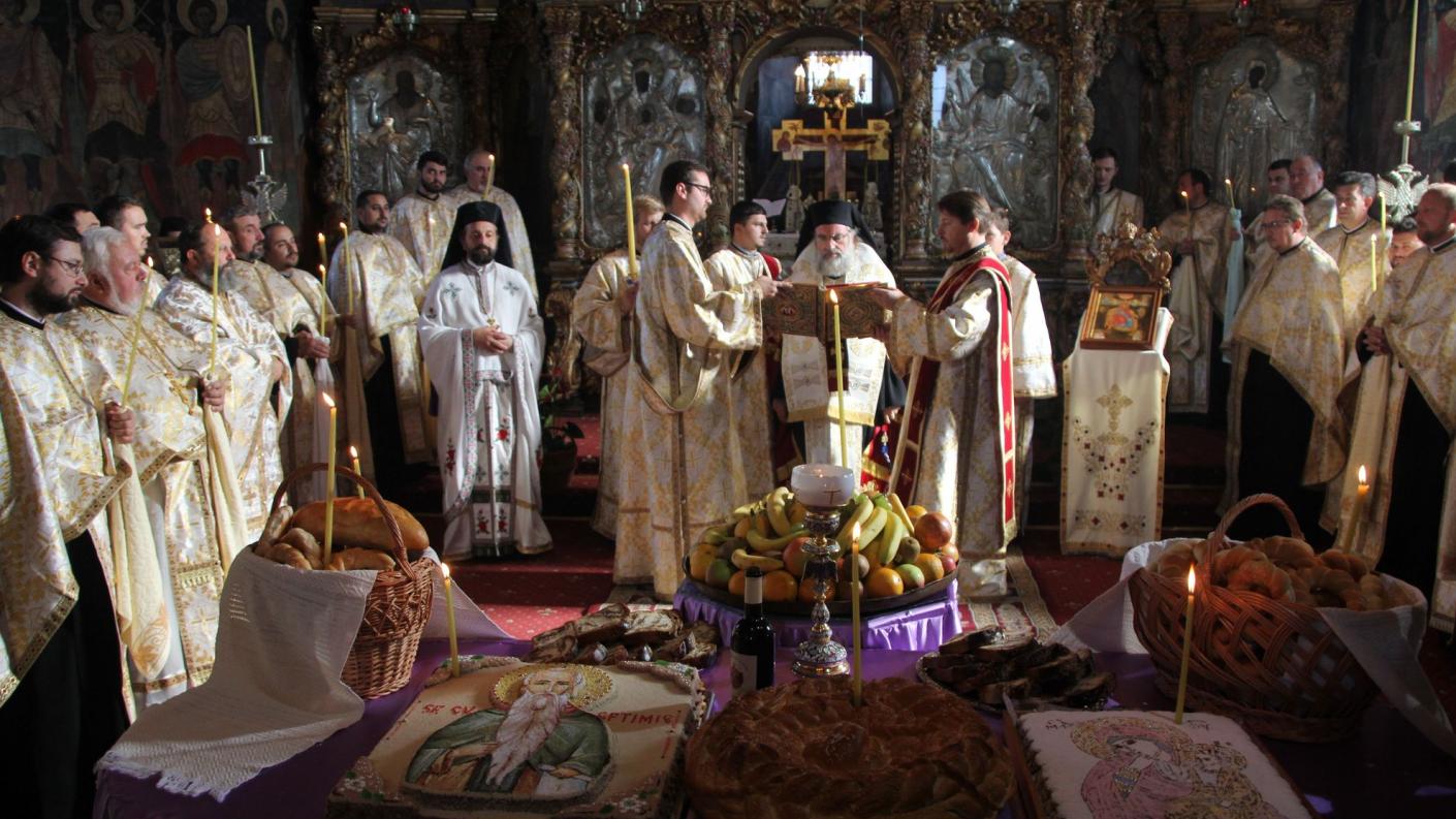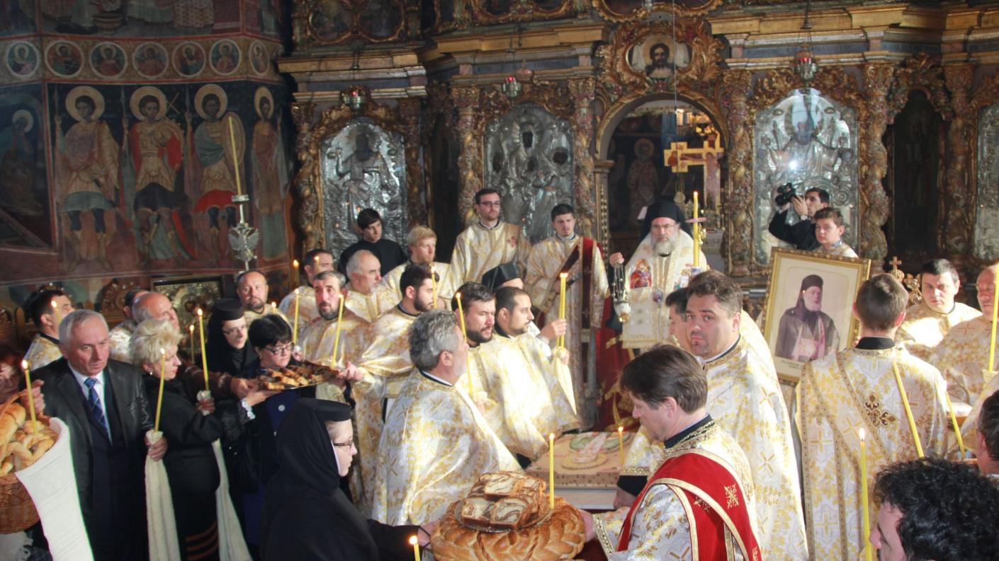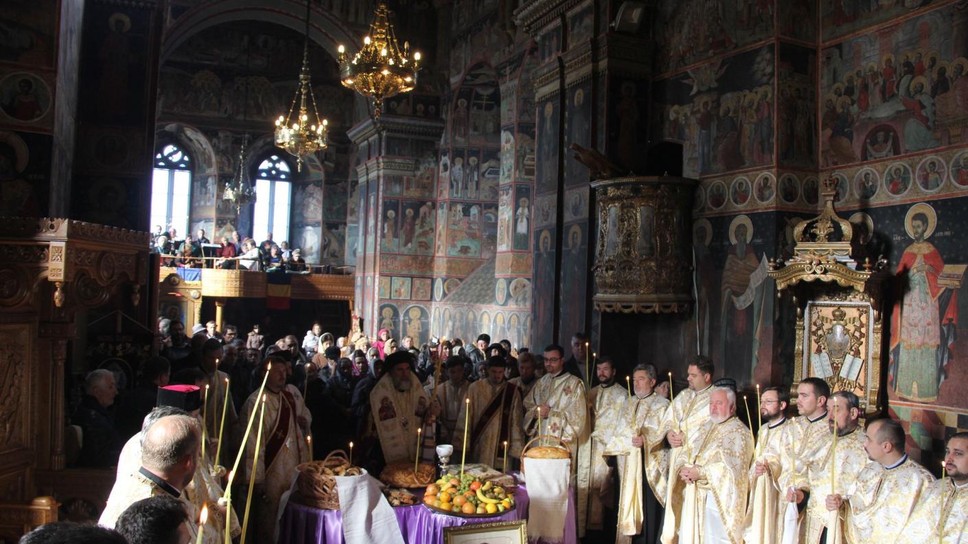 Credincioși și pelerini din cuprinsul Eparhiei Romanului și Bacăului au participat astăzi, 31 octombrie, la Dumnezeiasca Liturghie oficiată de un impresionant sobor de preoți și diaconi la Catedrala Arhiepiscopală ”Sf. Cuv. Parascheva” din Roman. Sfânta Liturghie a fost urmată de parastasul oficiat de Înaltpreasfințitul Părinte Ioachim, arhiepiscopul Romanului și Bacăului, la trecerea unui an de la mutarea la cele veșnice a vrednicului de pomenire ierarh Eftimie Luca, cel care a păstorit în această parte a Moldovei între anii 1978 - 2014. După acest moment, cei prezenți au mers în procesiune spre mormântul situat în curtea Centrului Eparhial, unde a fost oficiat un trisaghion întru pomenirea celui de-al 76 ierarh pe scaunul de la Roman. În atmosfera de rugăciune și comuniune, Înaltpreasfințitul Ioachim a evocat aspecte din viața și activitatea vlădicăi Eftimie ”cel bun”, reliefând rolul pe care acesta l-a avut în istoria multiseculară a acestei eparhii. La final, părinții slujitori ai Catedralei Arhiepiscopale au împărțit credincioșilor prezenți pachete cu alimente întru pomenirea arhipăstorului Eftimie Luca.