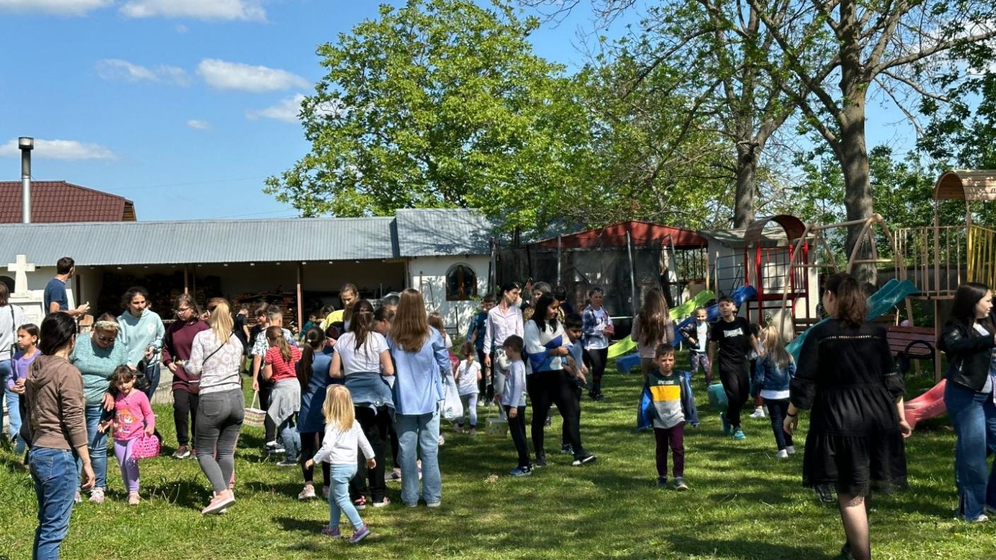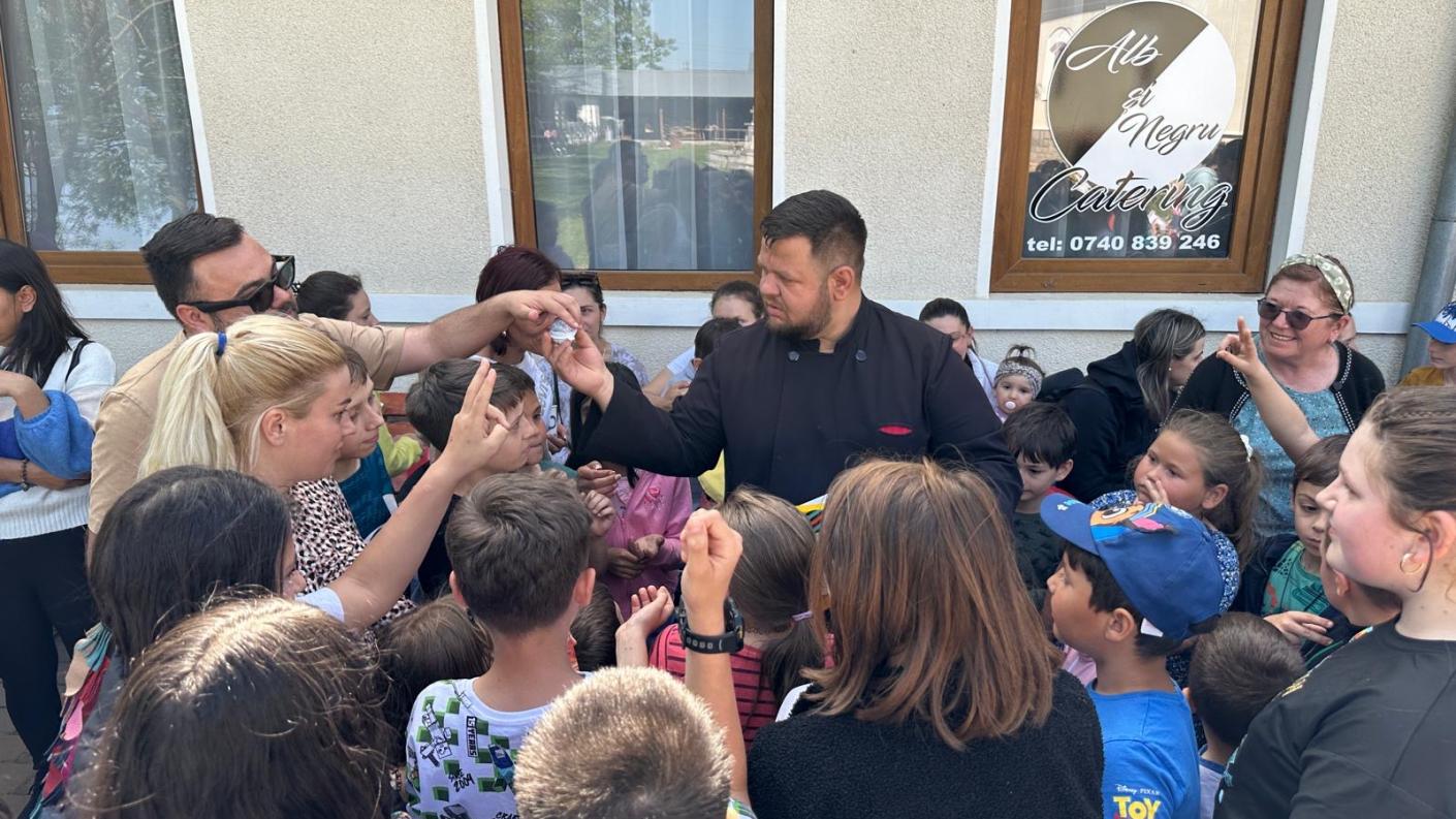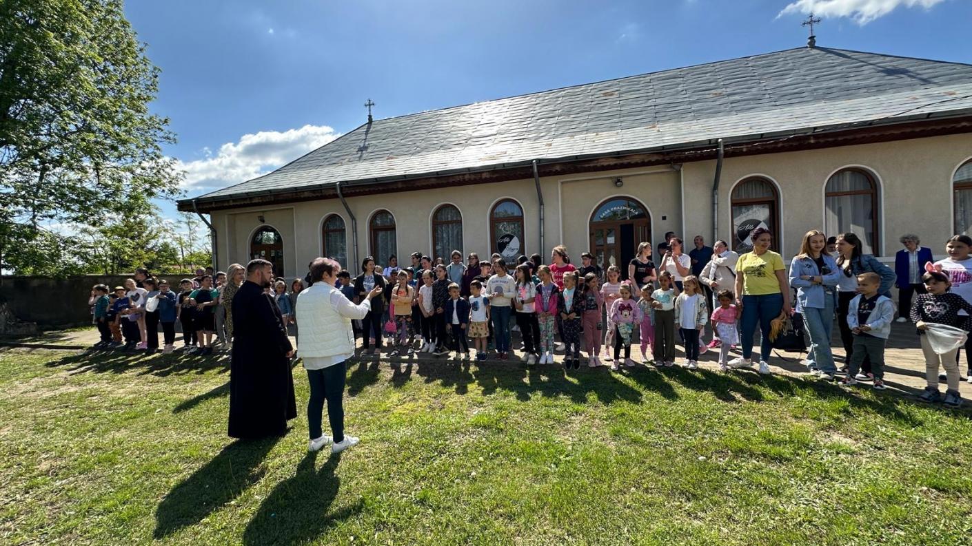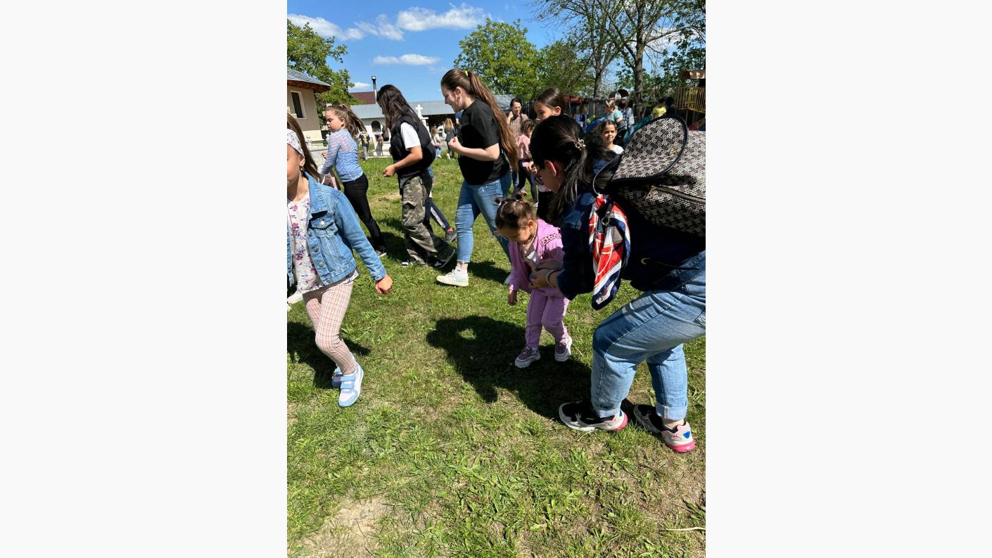 După eforturi susținute de a scormoni fiecare colț de natură ce putea ascunde minunății delicioase, copiii s-au putut bucura de un suc răcoritor natural din fructe, plin de vitamine, au jucat jocuri distractive de grup, au hrănit micii prieteni urecheați ai parohiei și s-au bucurat de inaugurarea trambulinei din curtea Bisericii.