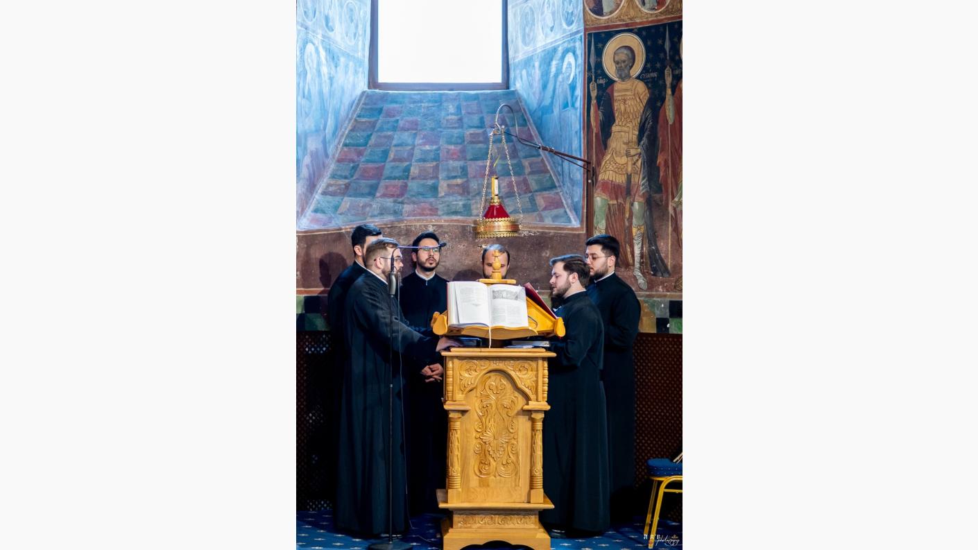 Răspunsurile liturgice au fost oferite de Corul „Diaconia” al Catedralei arhiepiscopale „Sfânta Cuvioasă Parascheva” din Roman, dirijat de arhidiaconul Alexandru Tecucianu. (Pr. Valentin Băltoi)