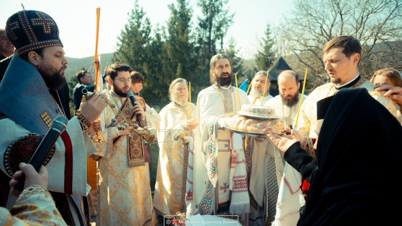 Cuvântul de mulțumire a fost adresat de părintele arhimandrit Benedict Carp, starețul Mănăstirii „Sfântul Sava” Berzunți, care a oferit Ierarhului o icoană a Bunei Vestiri, hramul Mănăstirii Pogleț:
