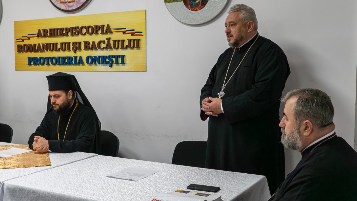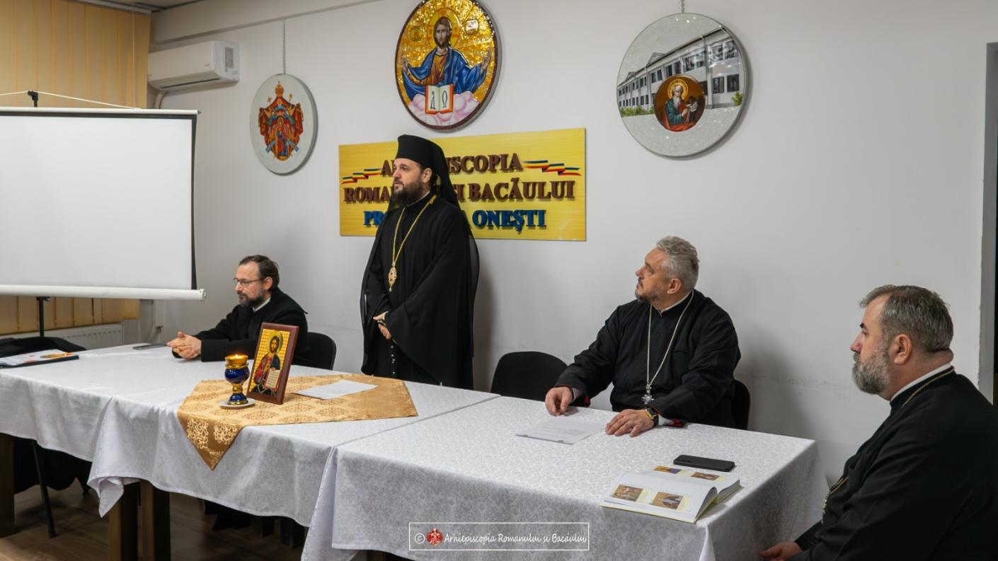 În deschidere, Preasfinția Sa a transmis părinților prezenți binecuvântarea Părintelui Arhiepiscop, și-a manifestat bucuria reîntâlnirii cu preoții oneșteni și a prezentat ordinea de zi a ședinței, propunând pentru anul ce a început realizarea unui calendar în care să fie trecute și întâlniri liturgice. În cadrul acestora, după săvârșirea Dumnezeieștii Liturghii arhierești, se vor discuta problemele liturgice și pastorale pe care le întâlnesc clericii în activitatea lor.