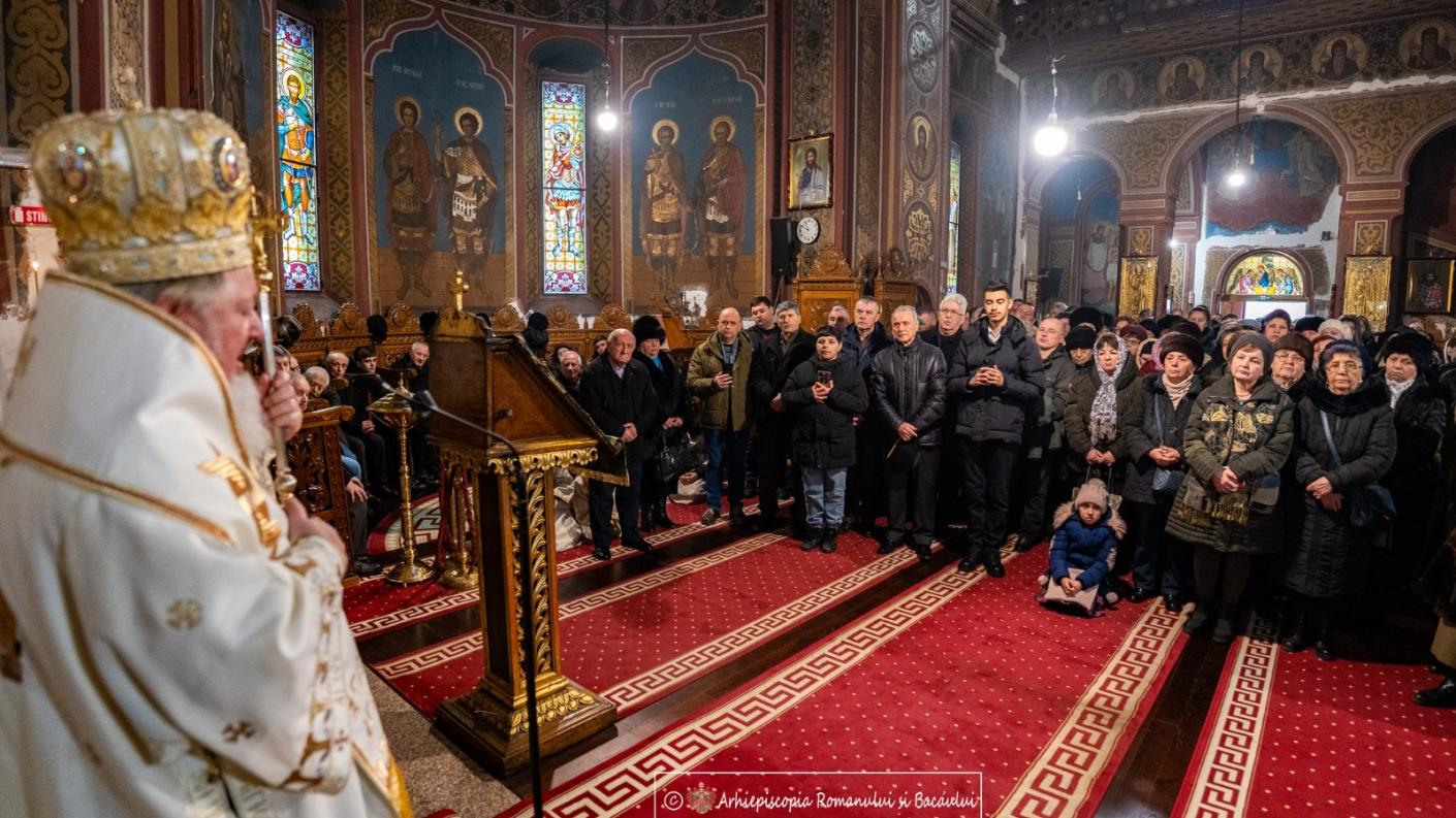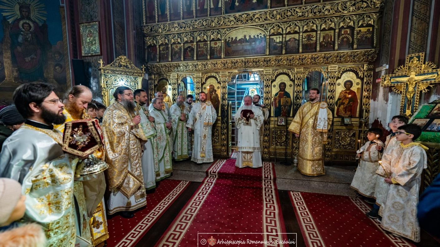 În Duminica a XXXIII-a după Rusalii (a Vameșului și a Fariseului), închinată de Sfânta Biserică începutului perioadei liturgice a Triodului, Preasfințitul Părinte Varlaam Ploieșteanul, Episcop-vicar patriarhal, a săvârșit, cu binecuvântarea Înaltpreasfințitului Părinte Ioachim, Arhiepiscopul Romanului și Bacăului, Sfânta și Dumnezeiasca Liturghie în biserica Parohiei „Sfântul Mare Mucenic Gheorghe” din municipiul Bacău. Din soborul slujitorilor au făcut parte preoții Bisericii „Sfântul Gheorghe”, cărora s-au adăugat preacuviosul părinte arhidiacon Nicolae Iftimiu, consilier patriarhal și directorul Agenției de știri Basilica, preacuviosul părinte protosinghel Nectarie Iftimie, mare ecleziarh al catedralei arhiepiscopale din Roman, preacucernicul părinte Ciprian Eugen Ciuche, protopop al Protopopiatului Bacău, precum și preoți invitați.