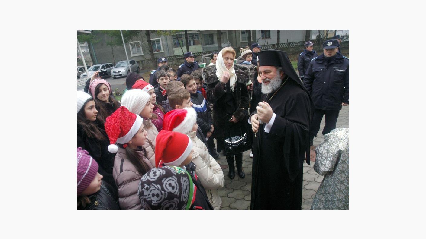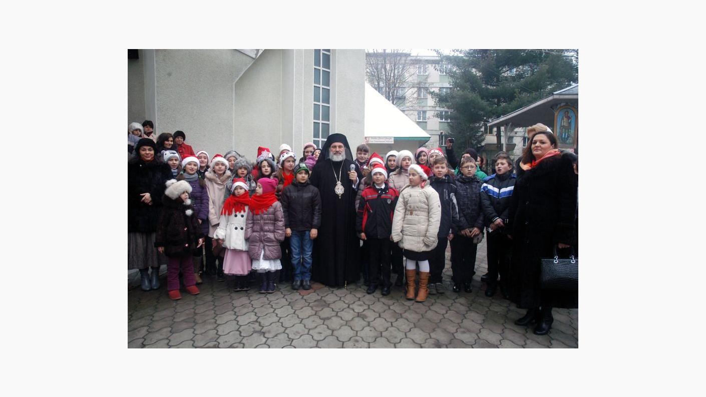 Copii de la trei școli, alături de copiii de la Cantina "Samarineanul Milostiv" l-au colindat astăzi, 15 decembrie, pe Preasfințitul Părinte Episcop Ioachim Băcăuanul la Biserica "Sf. Gheorghe" din municipiul Bacău.