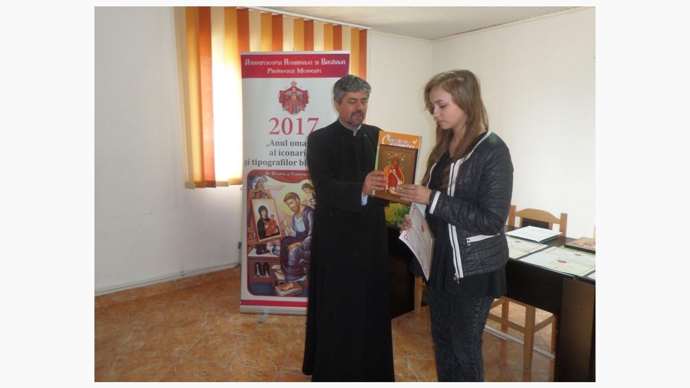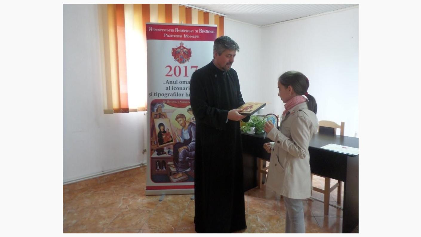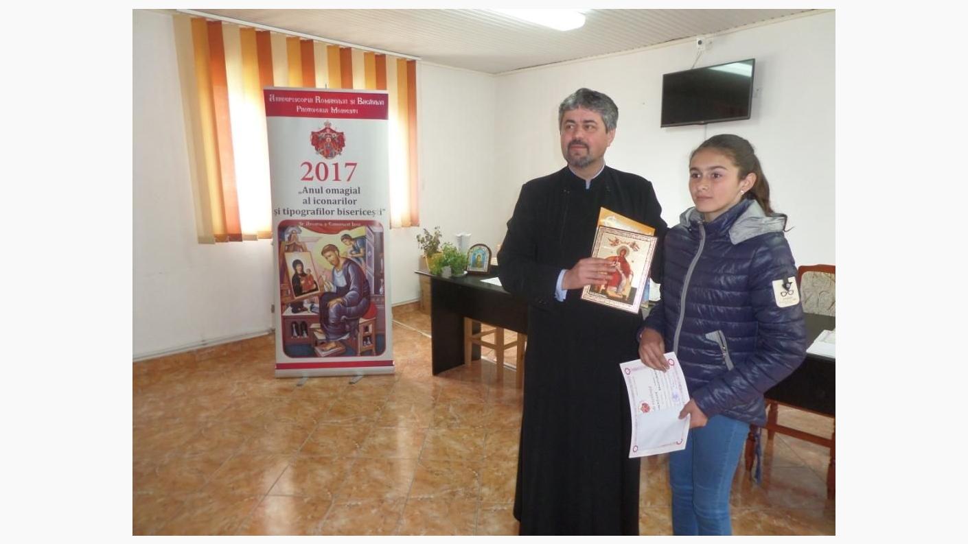 Părintele protopop a felicitat câștigătorii pentru lucrările realizate în concurs și a mulțumit preoților, cadrelor didactice și voluntarilor implicați în aceste proiecte desfășurate cu prilejul "Anului omagial al sfintelor icoane, al iconarilor și pictorilor bisericești și al Anului comemorativ Justinian Patriarhul și al apărătorilor Ortodoxiei în timpul comunismului", între care se numără și Concursul național de creație „Icoana și Școala mărturisirii”, implementat în Eparhia Romanului și Bacăului prin Biroul de catehizare din cadrul Sectorului Cultural.