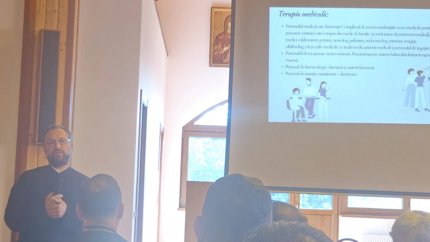 Pr. Ilarion Mâță a susținut prezentarea „Asistența religioasă în spitalele și unitățile medico-sociale din Eparhia Romanului și Bacăului”, evocând modelul de bună practică al Centrului medico-social rezidențial de la Hârja și vorbind despre Spitalul eparhial „Precista” din Roman. El a evidențiat implicarea deosebită a Înaltpreasfințitului Părinte Arhiepiscop Ioachim în procesul de reabilitare, consolidare și dotare a vechiului așezământ spitalicesc, retrocedat eparhiei în 2003.