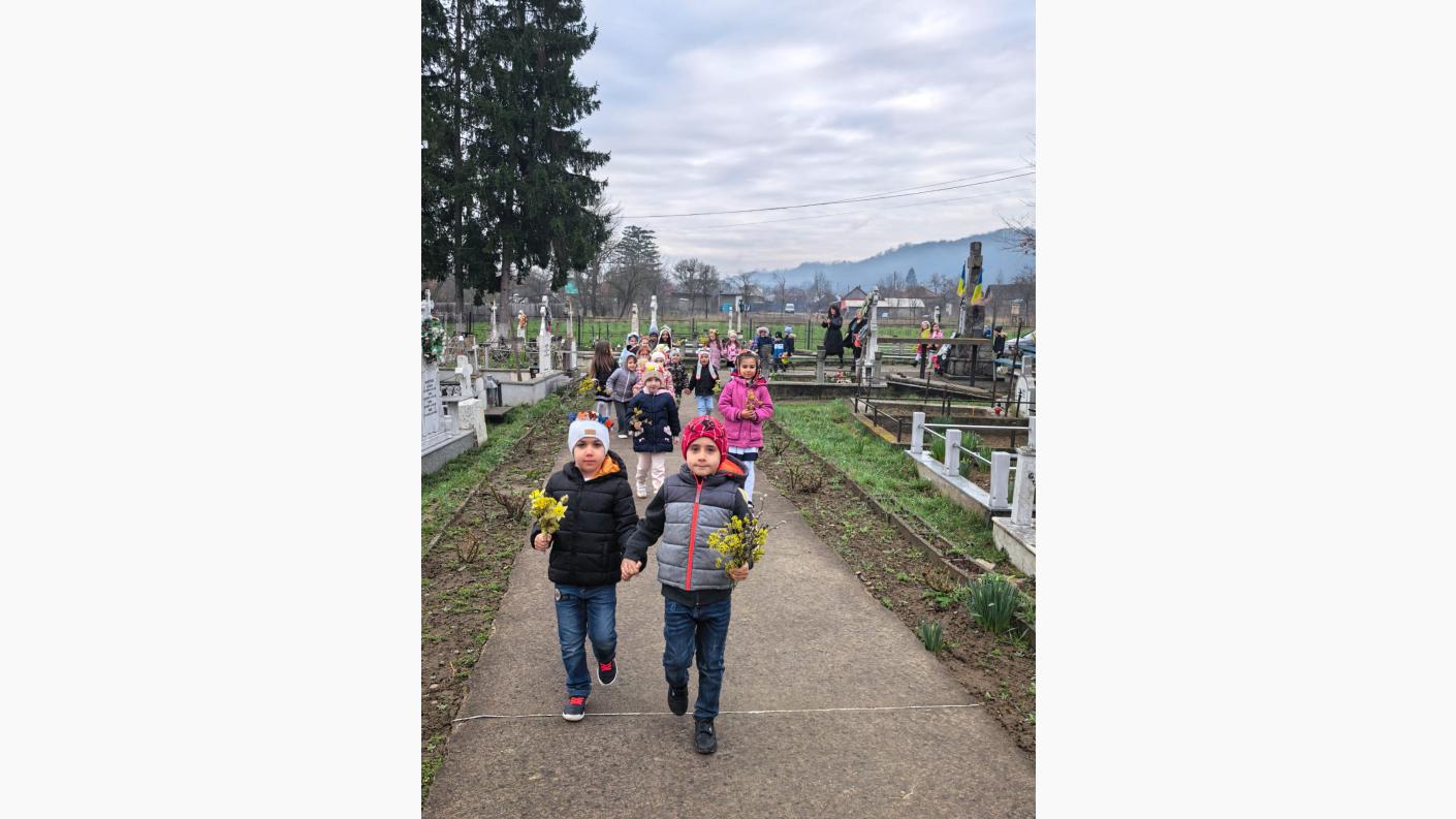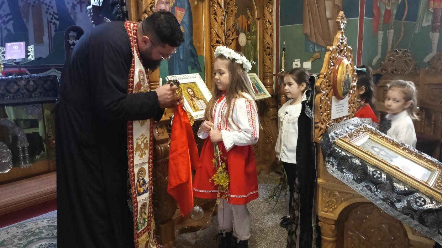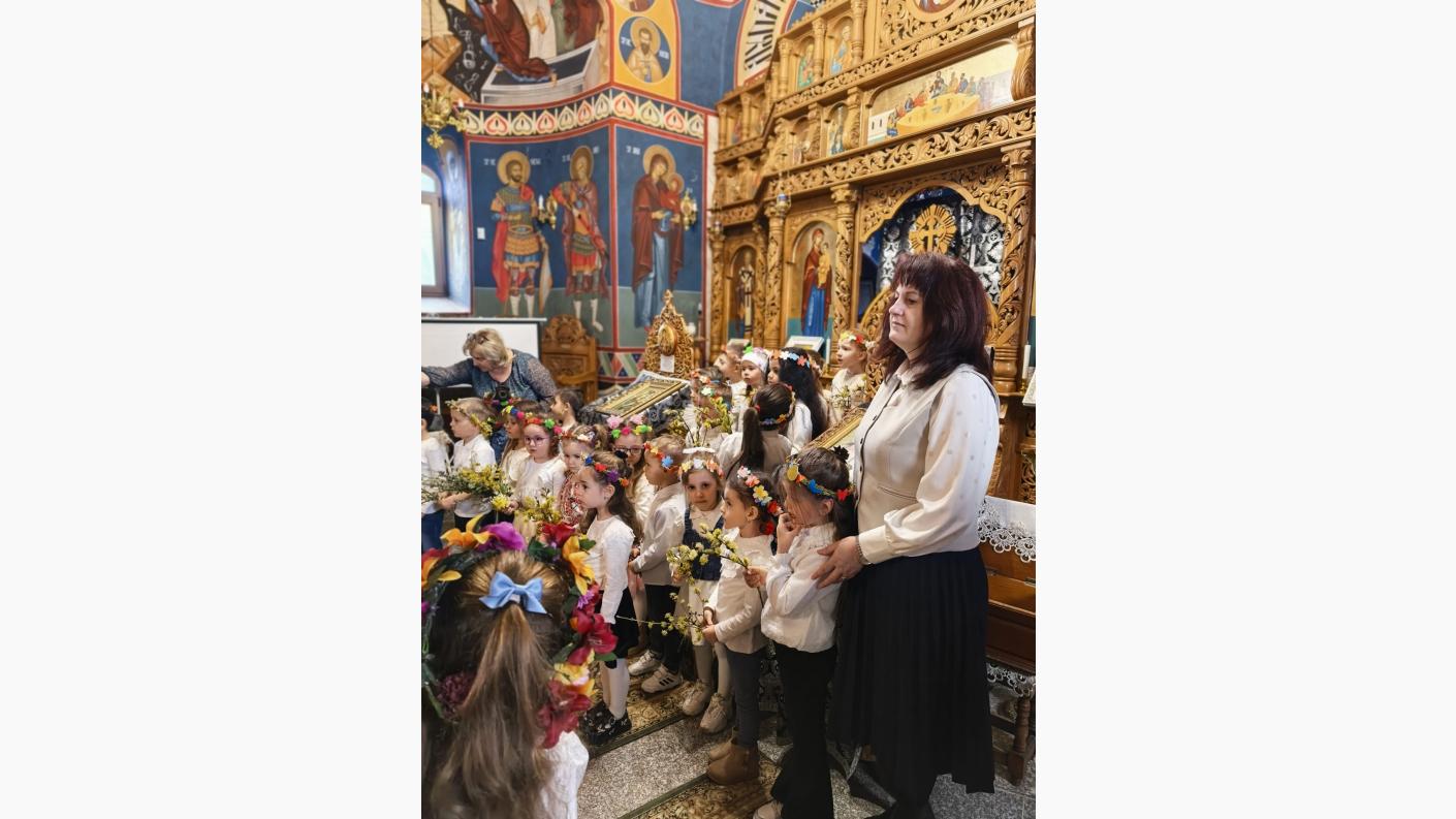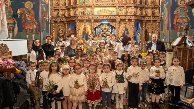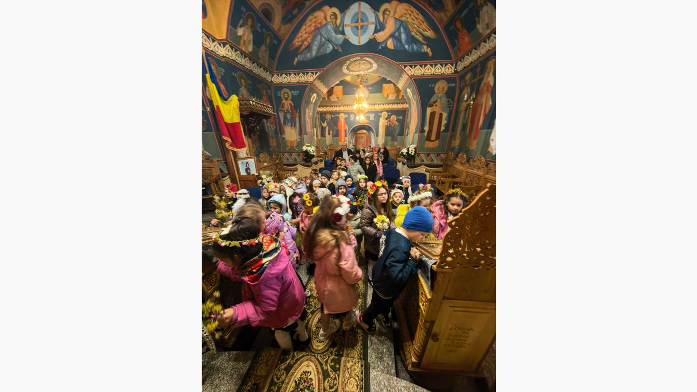 Cei mici au venit cu inimă mare, fiecare aducând câte un buchet de flori de primăvară pe care l-au depus la monumentul eroilor. În sfânta biserică au fost întâmpinați de către părintele Claudiu Neculcea, de la care, după cuvântul de bun venit și spovedanie, au primit Trupul și Sângele Domnului. După aceasta, copiii au interpretat cântece specifice sărbătorii Sfintelor Paști și au parcurs împreună cu părintele câteva noțiuni elementare despre rugăciune.
