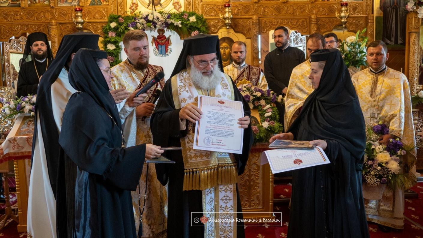 În semn de prețuire pentru activitatea administrativă, duhovnicească și misionară, maica stareță, stavrofora Magdalena Budeanu, a primit din partea Înaltpreasfinției Sale Crucea „Sf. Cuvioasă Parascheva”, una dintre distincțiile oferite în eparhie monahiilor cu activitate rodnică în mănăstire. Totodată, maicile Filofteia, Serafima, Maria și Tecla au primit din partea Chiriarhului distincții de vrednicie, ca răsplată pentru dăruirea lor în viața de obște, în slujire și în ascultările încredințate.