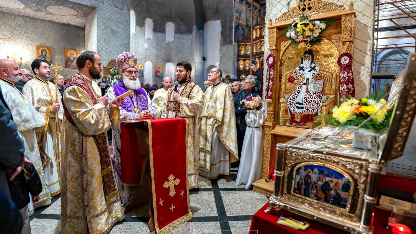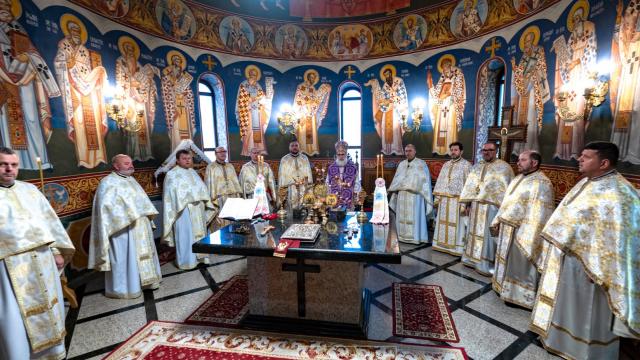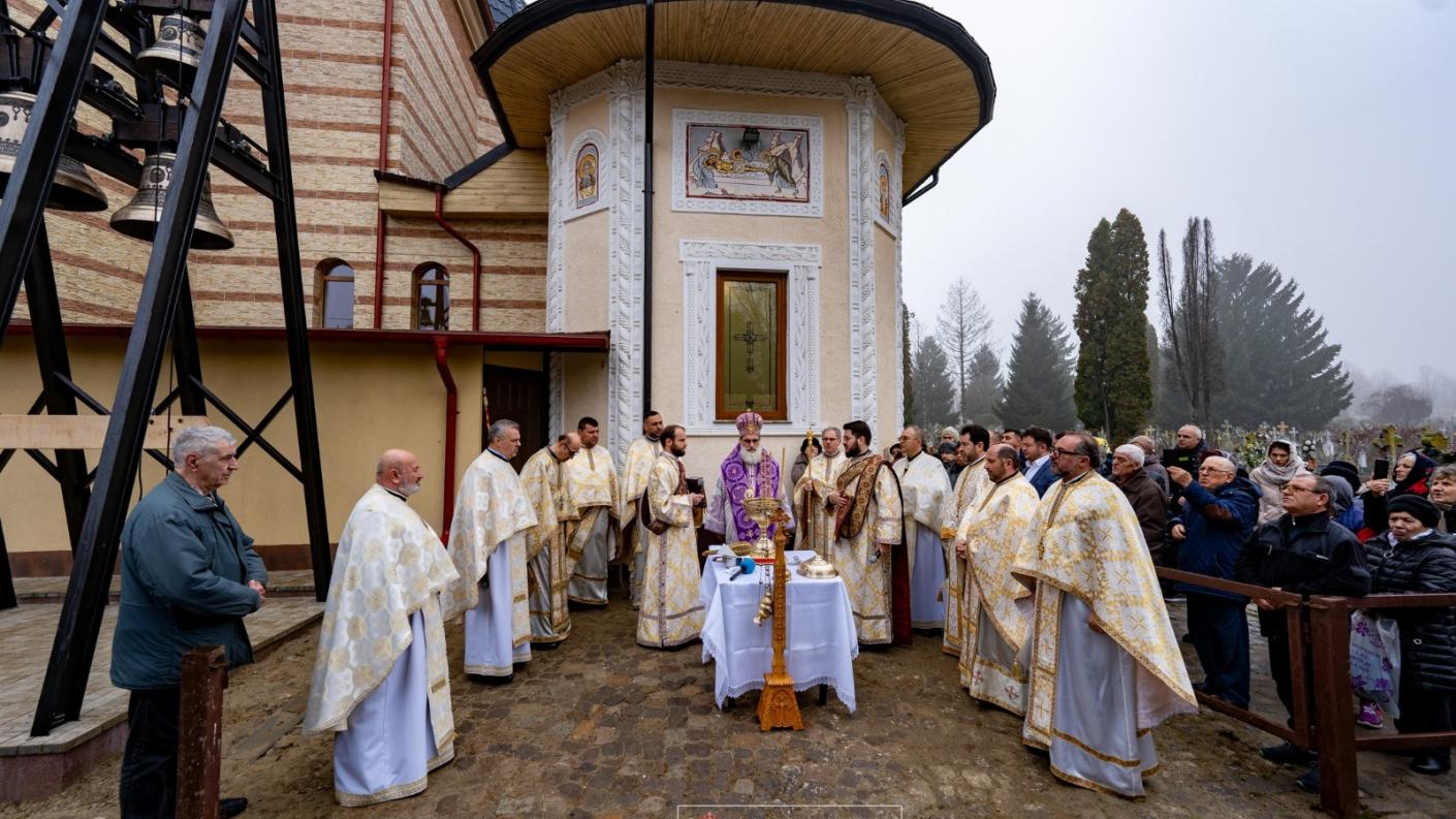 Apoi, înconjurat de soborul preoților și diaconilor, Înaltpreasfințitul Părinte Arhiepiscop Ioachim a săvârșit Sfânta Liturghie, în timpul căreia a înălțat rugăciuni de pomenire pentru ctitorii sfântului lăcaș trecuți în odihna lui Dumnezeu.