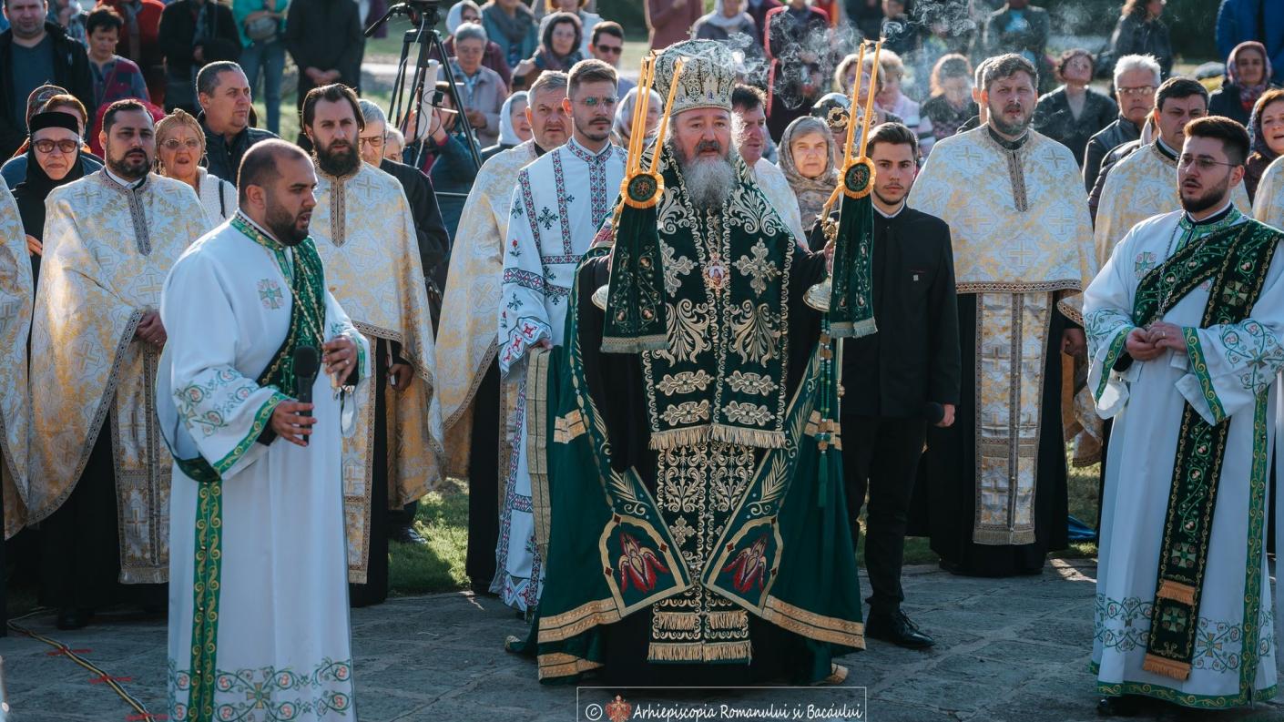 La această sărbătoare, armonia inconfundabilă a sunetelor noilor clopote ale catedralei arhiepiscopale inaugurate liturgic în contextul sărbătoririi hramului s-a împletit cu solemnitatea cântărilor stranei interpretate de membrii Corului Laudamus al Liceului Teologic „Episcop Melchisedec” Roman.