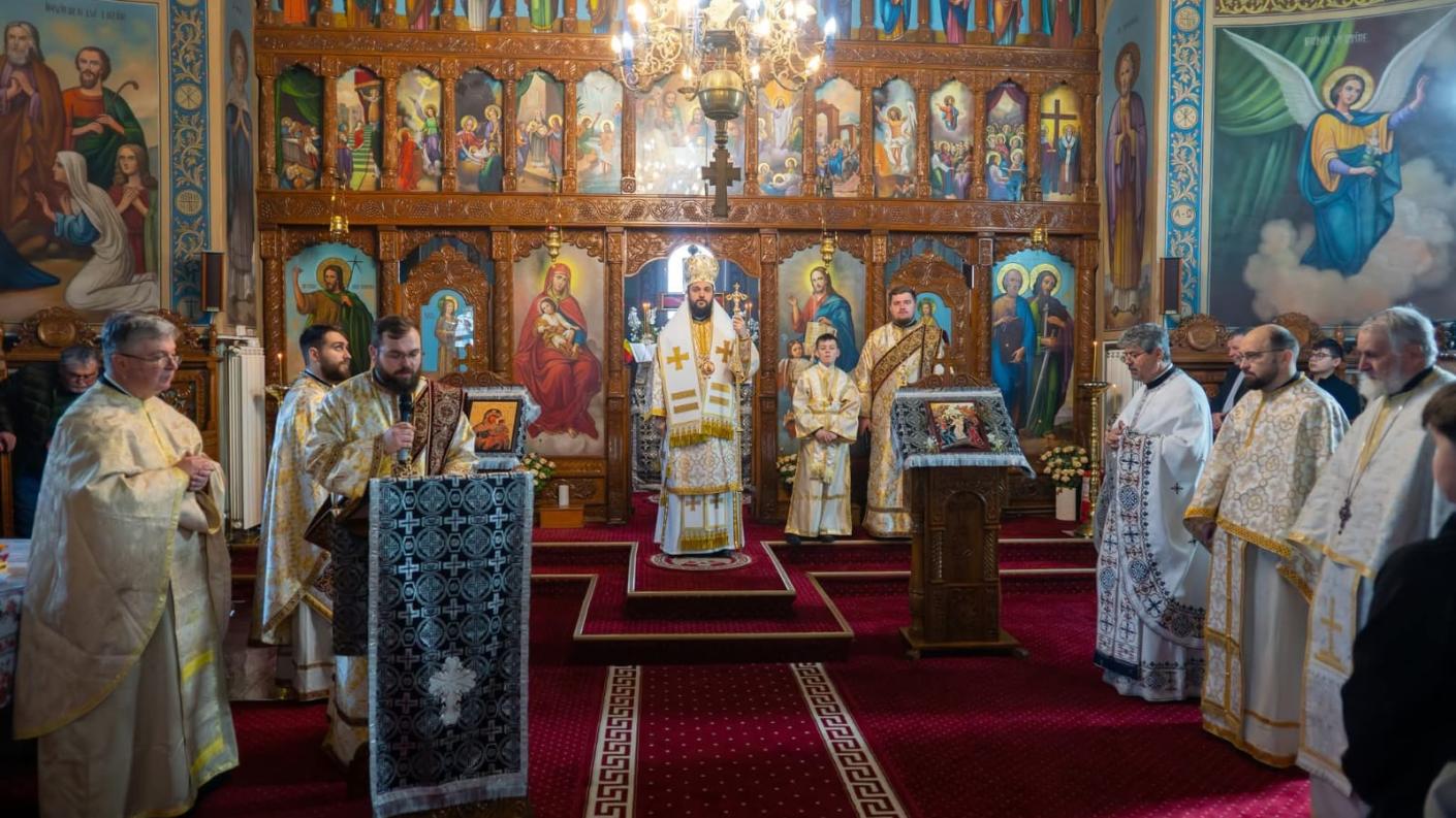 „Cu binecuvântarea Înaltpreasfințitului Părintelui nostru Ioachim, astăzi, în Duminica a IV-a din Postul Mare, am poposit în biserica ocrotită de Sfinții Apostoli „Petru și Pavel” pentru a săvârși Dumnezeiasca Liturghie a marelui Sfânt Vasile cel Mare și pentru a cere de la Dumnezeu iertarea păcatelor, dezlegare și Dumnezeieștile Taine pentru viața cea de veci pe care nădăjduim să o putem petrece încă de aici. Duminica de astăzi, ne pune înainte o chemare a Domnului Iisus Hristos prin Evanghelia ce s-a citit, amintindu-ne de o vindecare pe care Mântuitorul a săvârșit-o în Capernaum, a unui copil care pătimea din pricina unor duhuri necurate. A încercat tatăl lui să îl vindece, mergând la doctori, care nu au putut să facă nimic, au mers și la apostolii Mântuitorului, dar copilul suferea în continuare de acest duh necurat care îl chinuia, îl arunca în apă și în foc și îi făcea cumplită viața. Pe lângă copil sufereau și părinții și cunoscuții și atunci tatăl s-a hotărât să vină înaintea Domnului Hristos, Care a certat duhul mut și surd și l-a redat părinților săi sănătos, iar Mântuitorul prin aceasta ne arată că este stăpân al lumii și al văzduhului și al tuturor celor care sunt zidite pe întreg pământul”.