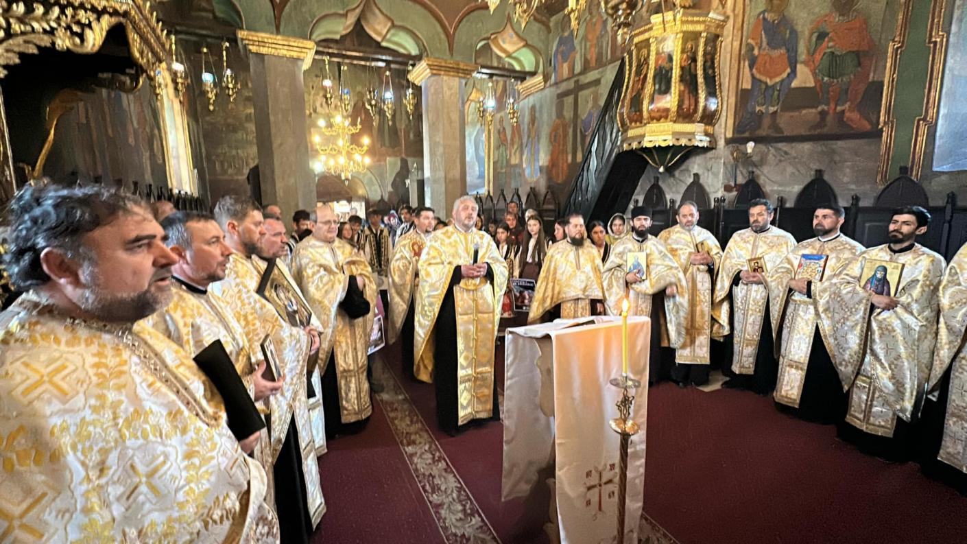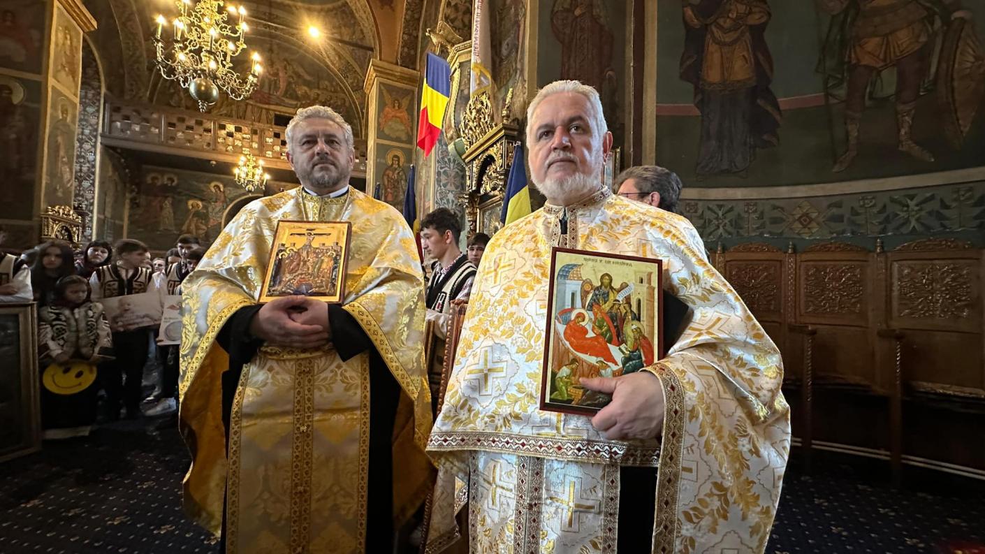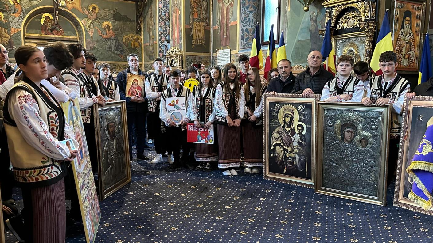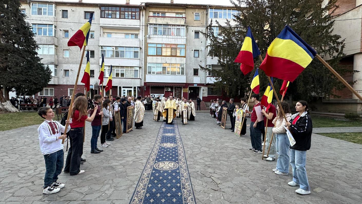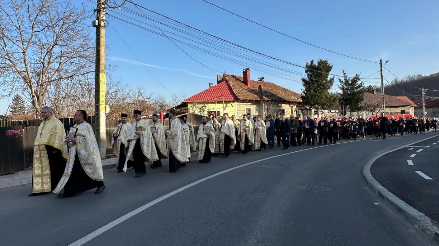 Cu icoane și steaguri purtate în mâini, tineri îmbrăcați în port tradițional, cărora li s-au adăugat credincioși de mai multe vârste, au încadrat soborul de slujitori deplasându-se spre Biserica „Sfinții Voievozi”. Aici au fost înălțate rugăciuni pentru sfințirea icoanelor, iar părintele paroh Sorin-Mihail Postelnicu a rostit un cuvânt de mulțumire. Tot aici, în mod simbolic, ca semn al ospitalității s-au pregătit mici gustări sub forma „mucenicilor” cu miere și nucă. Punctul final al procesiunii a fost la Biserica „Adormirea Maicii Domnului” - Precista, unde momentele de rugăciune au continuat.