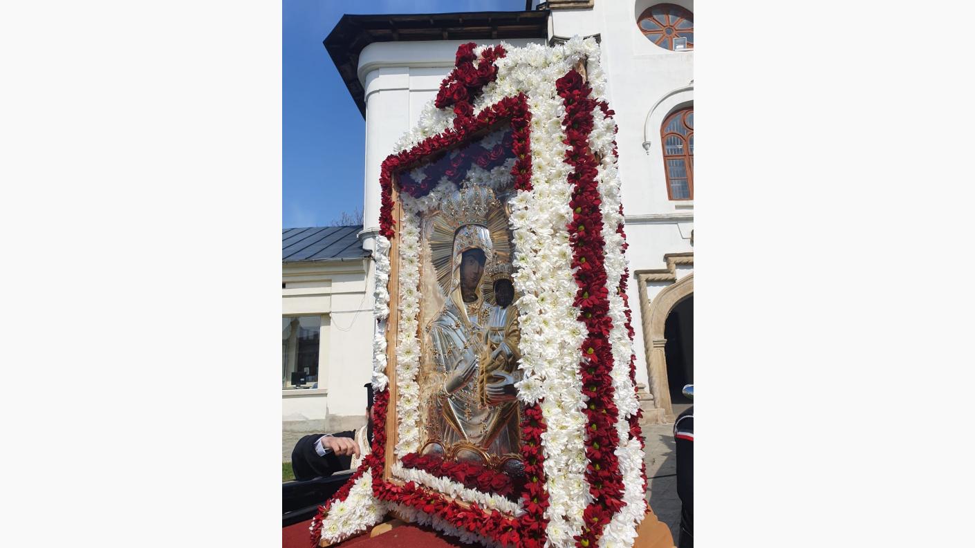 Racla și cele două icoane au fost amplasate într-o maşină special pregătită, care le-au purtat în procesiune prin mai multe locații importante din Roman. Sub coordonarea părintelui protopop Dragoș Munteanu, mașina care a transportat Sfintele Moaște și Icoanele Maicii Domnului a fost împodobită cu ramuri de salcie, simbol al intrării Domnului Iisus în Ierusalim. Astfel, romașcanii au avut bucuria revederii în chip tainic și prin vedere a Maicii Domnului, bucuria și ocrotitoarea tuturor.