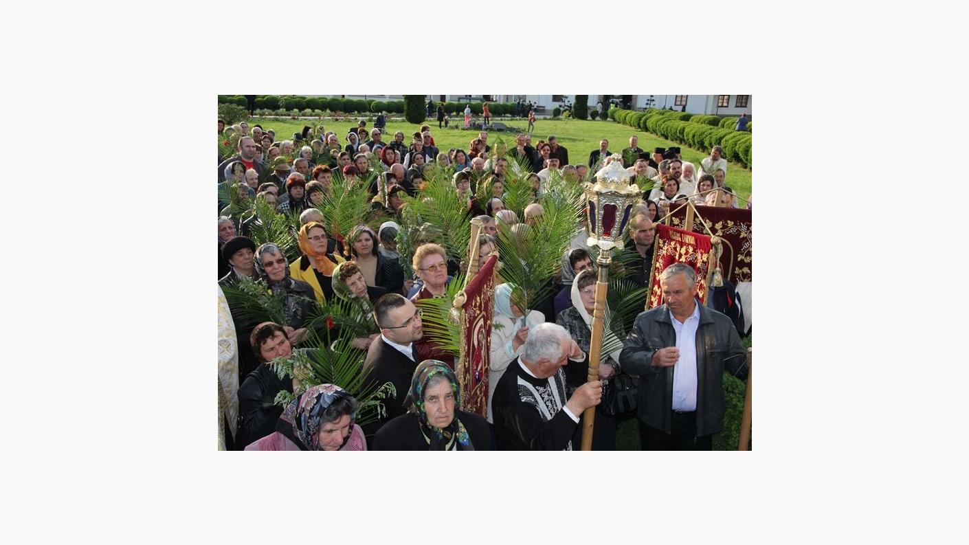 Preoții Protopopiatului Roman împreună cu tinerii elevi din școlile romașcane și numeroși credincioși au participat la cea de-a patra ediție a procesiunii din Duminica Floriilor oraganizate la Roman, în curtea catedralei arhiepiscopale „Sfânta Parascheva”.