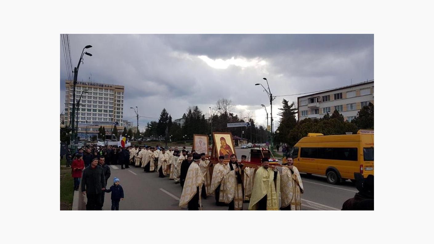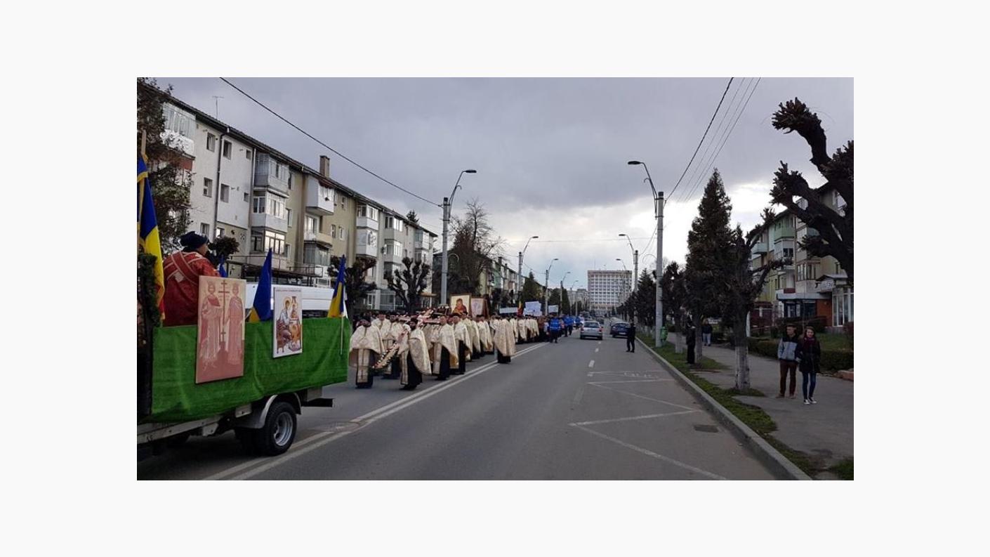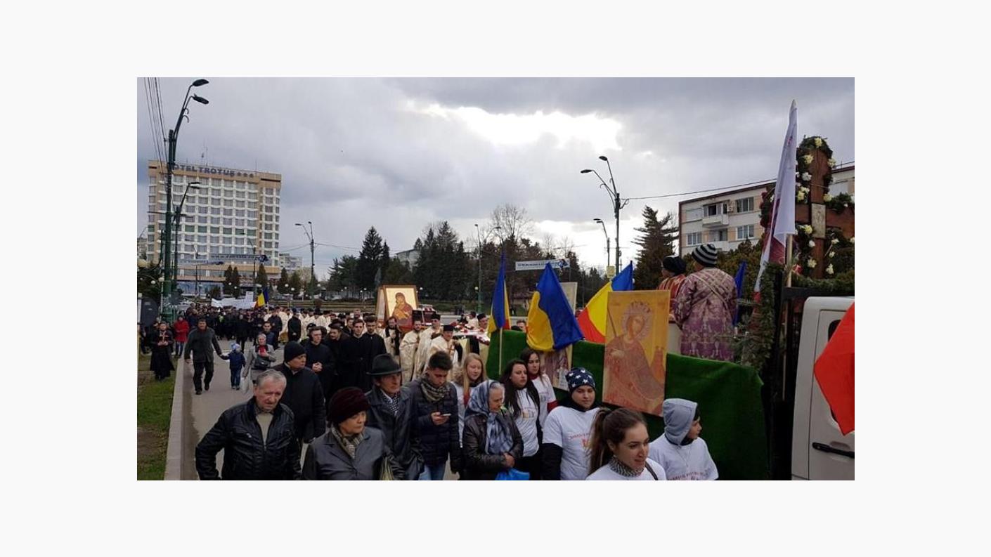 Cu binecuvântarea Înaltpreasfințitului Părinte Ioachim, Arhiepiscopul Romanului și Bacăului, în ziua de 19 martie 2017, a treia Duminică din Postul Mare, închinată Sfintei Cruci, preoții Protoieriei Onești și mulțime de popor binecredincios s-au adunat la Catedrala "Pogorârea Sfântului Duh" din municipiu unde, începând cu ora 16:00, au rostit Acatistul Sfintei Cruci. Din curtea acestui edificiu au format un pod de mulțime ce a traversat orașul spre Biserica "Sfântul Nicolae", intonând imnuri creștine și cântări închinate Sfintei Cruci. Un moment inedit a fost întâlnirea cu credincioșii din zona de jos a orașului, care a fost marcată de un popas de rugăciune, iar copiii prezenți la manifestație, îmbrăcați în tricouri personalizate cu mesaje de susținere pentru familie și viața creștină, bannere și steaguri, au eliberat peste 50 de porumbei, cruci vii zburând spre cerul senin, și au fost binecuvântați de Preacucernicul Părinte Protoiereu Ioan.
