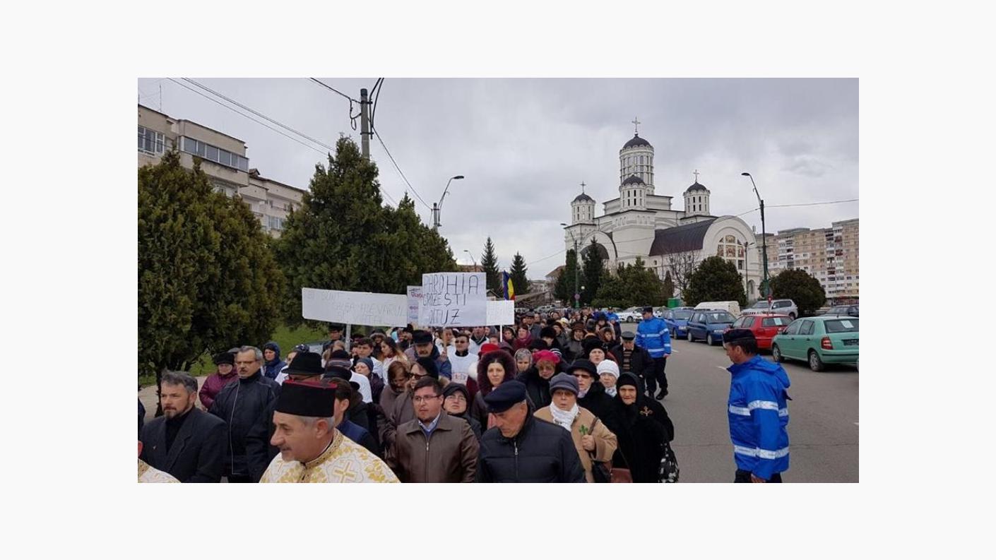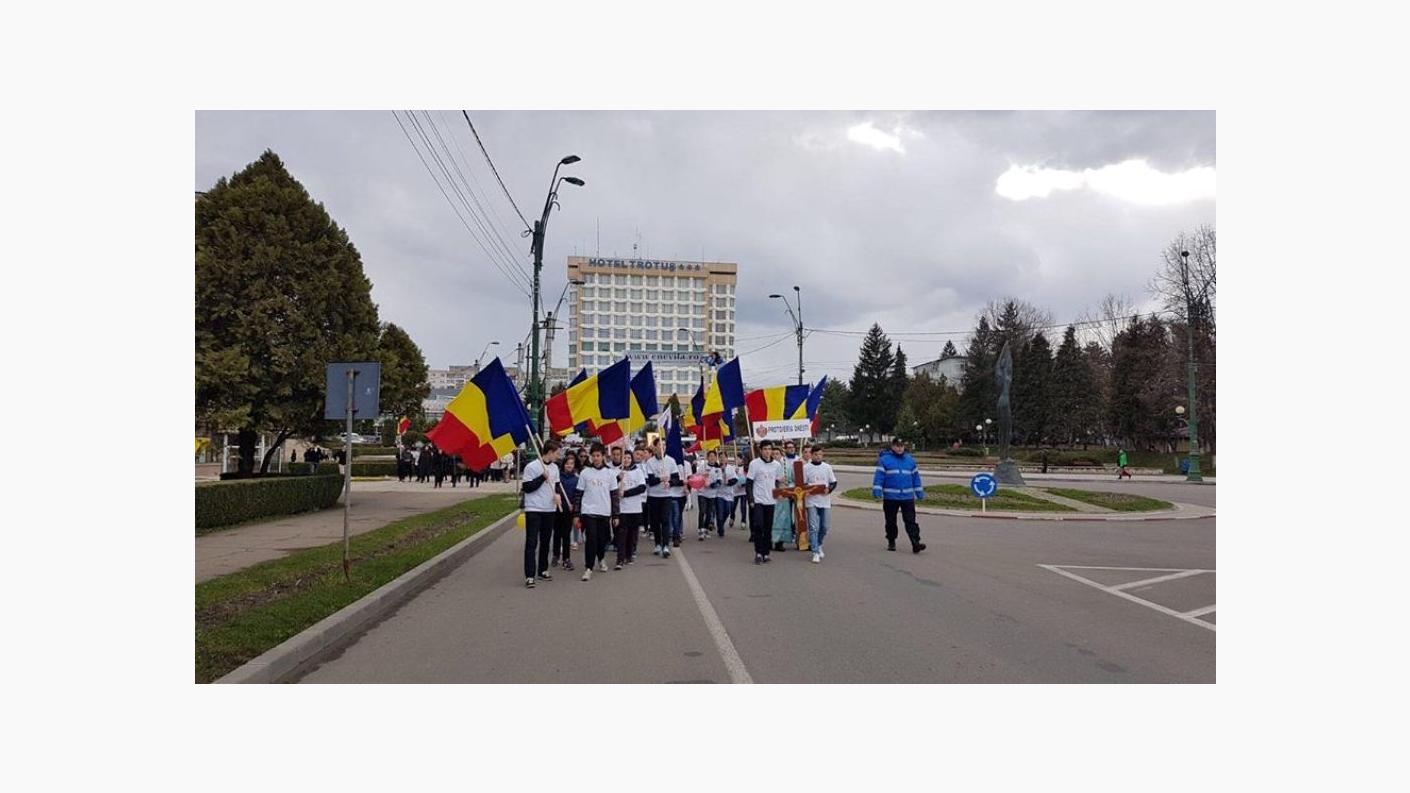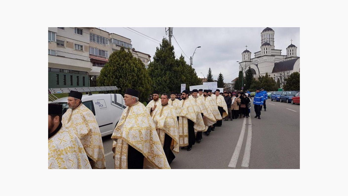 Cu binecuvântarea Înaltpreasfințitului Părinte Ioachim, Arhiepiscopul Romanului și Bacăului, în ziua de 19 martie 2017, a treia Duminică din Postul Mare, închinată Sfintei Cruci, preoții Protoieriei Onești și mulțime de popor binecredincios s-au adunat la Catedrala "Pogorârea Sfântului Duh" din municipiu unde, începând cu ora 16:00, au rostit Acatistul Sfintei Cruci. Din curtea acestui edificiu au format un pod de mulțime ce a traversat orașul spre Biserica "Sfântul Nicolae", intonând imnuri creștine și cântări închinate Sfintei Cruci. Un moment inedit a fost întâlnirea cu credincioșii din zona de jos a orașului, care a fost marcată de un popas de rugăciune, iar copiii prezenți la manifestație, îmbrăcați în tricouri personalizate cu mesaje de susținere pentru familie și viața creștină, bannere și steaguri, au eliberat peste 50 de porumbei, cruci vii zburând spre cerul senin, și au fost binecuvântați de Preacucernicul Părinte Protoiereu Ioan.