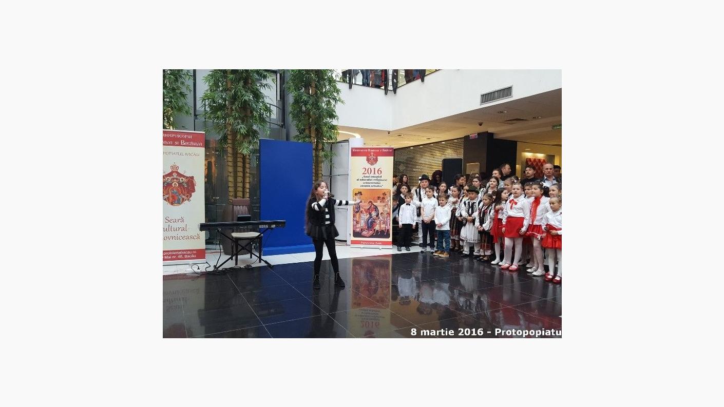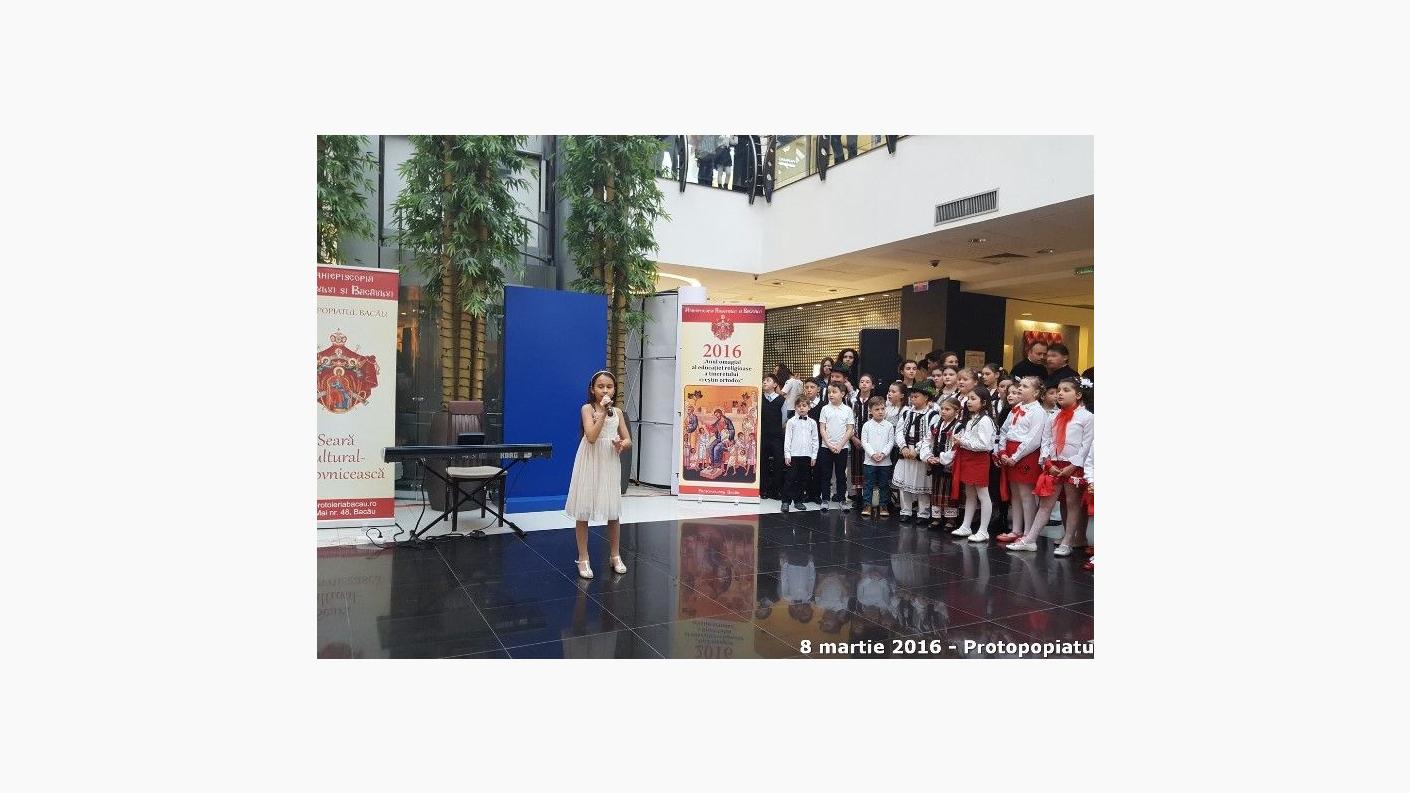 Cu binecuvântarea Înaltpreasfințitului Părinte Ioachim, Arhiepiscopul Romanului și Bacăului, și în contextul Anului omagial al educaţiei religioase a tineretului creştin ortodox, marți – 8 martie 2016, începând cu ora 16.00, în spațiul generos pus la dispoziție de Arena Mall, s-a desfășurat evenimentul misionar și cultural INIMĂ DE MAMĂ! Organizat sub coordonarea Protopopiatului Bacău, evenimentul a avut drept actori principali copii și tineri talentați care au susținut un spectacol inedit oferit mamelor de 8 Martie.