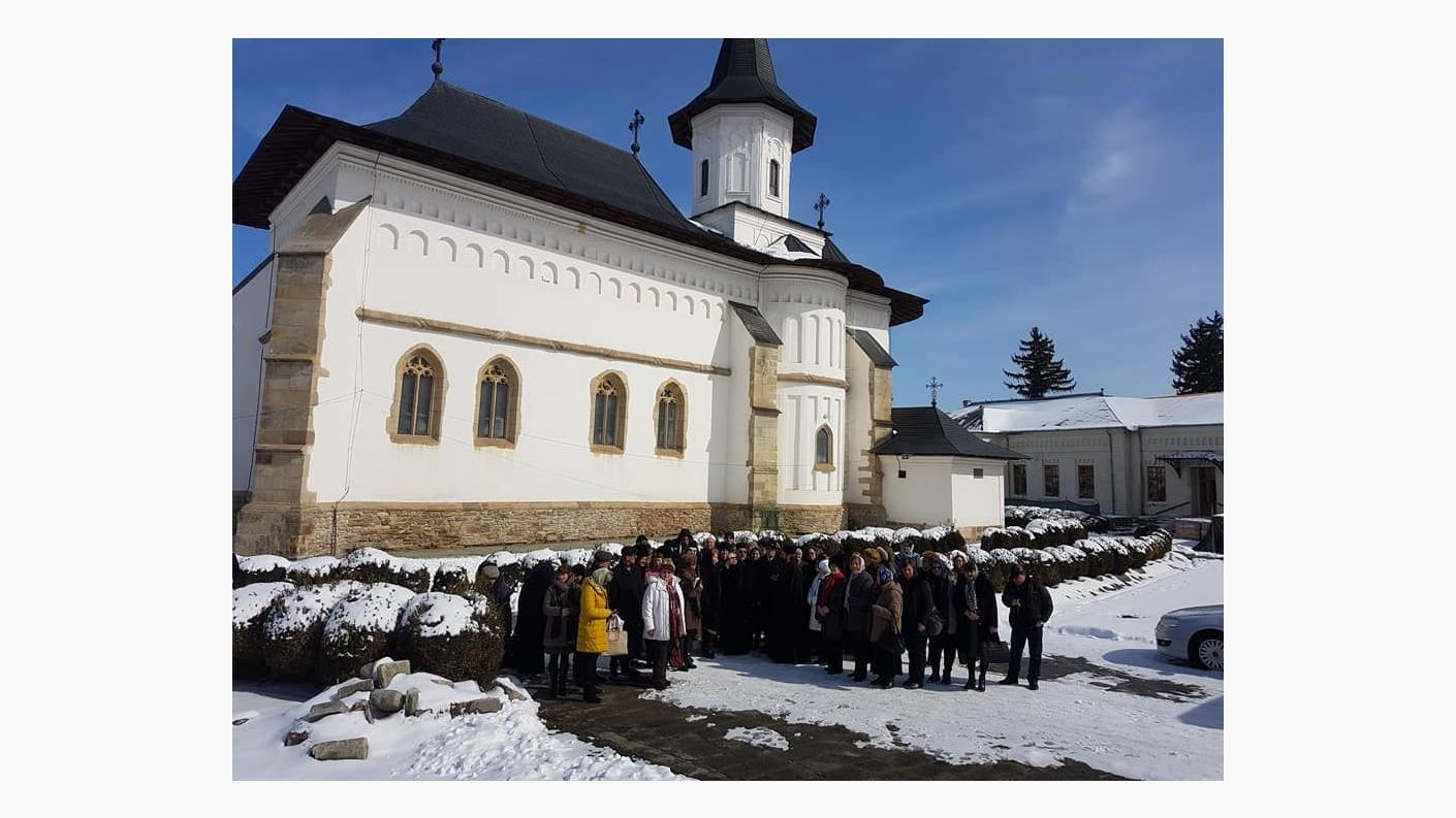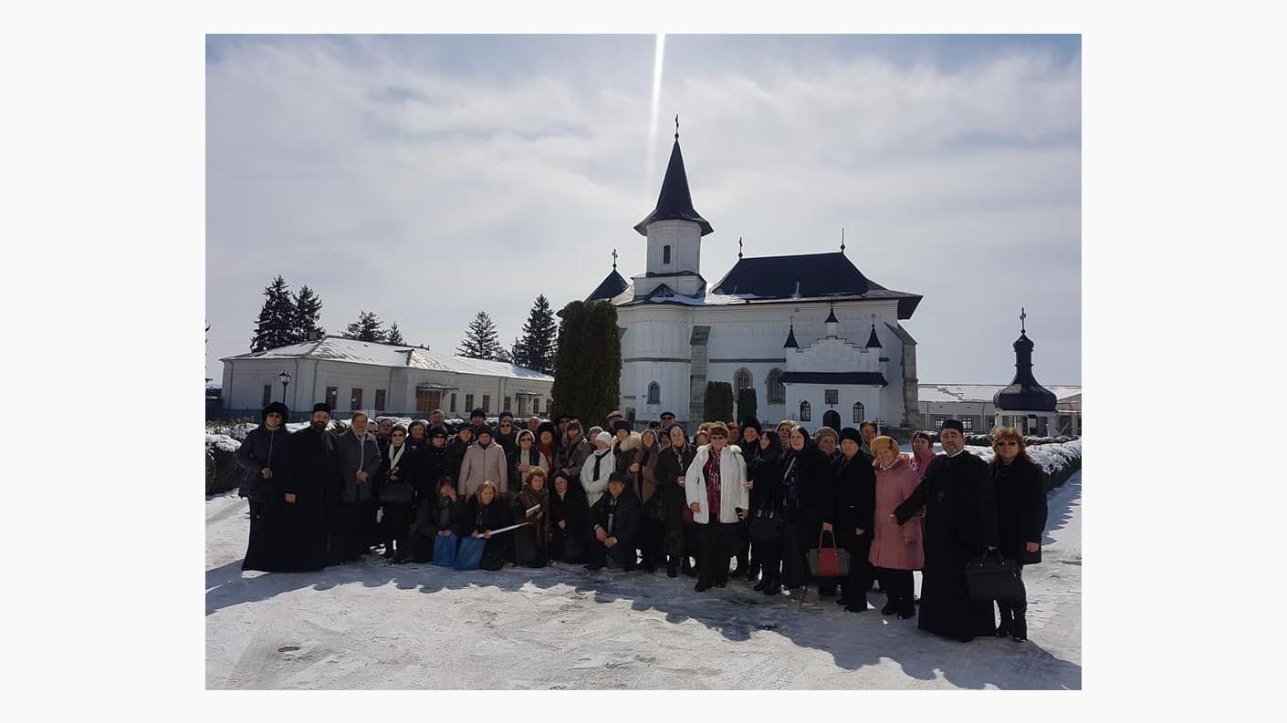 Între obiectivele vizitate a fost străvechea Catedrală arhiepiscopală închinată Sfintei Cuvioase Parascheva de la Roman, unde Părintele Arhiepiscop Ioachim a primit pe credincioșii însoțiți de preotul lor duhovnic binecuvântându-i și adresându-le un cuvânt de bun venit, după care le-a citit câteva rugăciuni speciale pentru sănătate și iertare de păcate.
