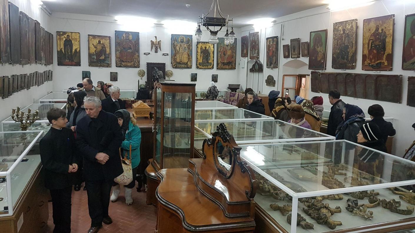 De asemenea, părintele arhimandrit Andrei Ioniță, mare ecleziarh al catedralei a explicat istoria acestui sfânt lăcaș și a unor evenimente istorice ce s-au desfășurat de-a lungul vremii în el. Credincioșii sascuteni s-au închinat la racla cu sfintele moaște, aflată în sfântul lăcaș, au putut admira pictura interioară de secol XVI și viața în imagini a Sfintei Parascheva, ansamblu pictural unic în lume, după care au vizitat muzeul din incinta Centrului eparhial, unde se află expuse icoane, cărți și obiecte de cult ce datează de sute de ani. Un alt obiectiv al vizitei a fost fabrica de lumânări „Sf. Fotini”, unde pelerinilor li s-a explicat tehnologia confecționării lumânărilor și importanța achiziționării lor doar de la pangarele bisericilor și mănăstirilor, precum și fabrica de pâine „Betleem” unde se fabrică prescurile folosite la Sfânta Liturghie în lăcașurile de cult din Eparhie.
