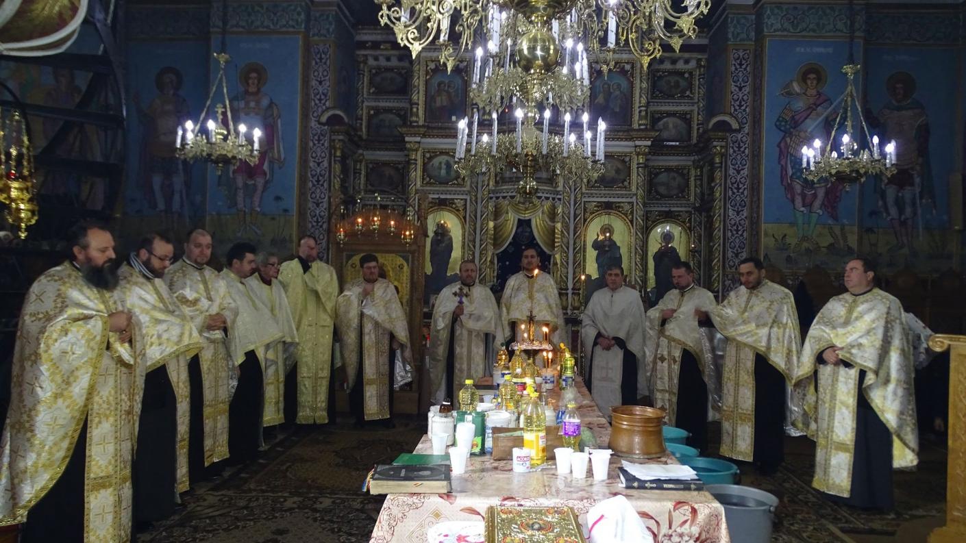 Astfel, începând cu ora 9.30 a fost săvârșită slujba aghiasmei și a Tainei Sfântului Maslu de către un sobor format din preoții Cercului Pastoral „Episcop Teodosie Atanasiuˮ sub protia părintelui protoiereu Ioan Negoiță, slujbă la care au participat 16 persoane lipsite de libertate din cadrul Penitenciarului Bacău, însoțite de părintele capelan Mașala Daniel și părintele Ciuche Eugen Ciprian, consilier eparhial al sectorului social filantropic și misionar al Arhiepiscopiei Romanului și Bacăului, la slujbă participând și credincioși ai parohiei gazdă a evenimentului.