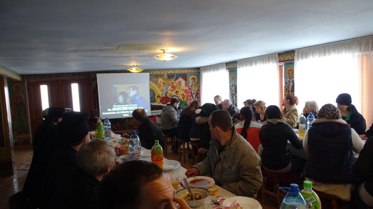 A urmat apoi o agapă în timpul căreia s-a prezentat un film tematic și s-au purtat discuții pe teme ca: recunoașterea greșelilor în fața lui Dumnezeu, încrederea în iubirea iertătoare a lui Dumnezeu, nejudecarea aproapelui, ducerea crucii cu răbdare și cu încredere în răsplata lui Dumnezeu.