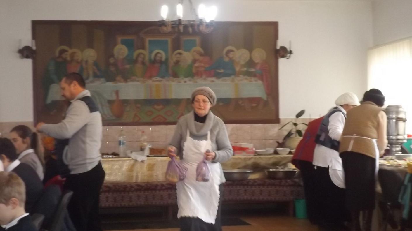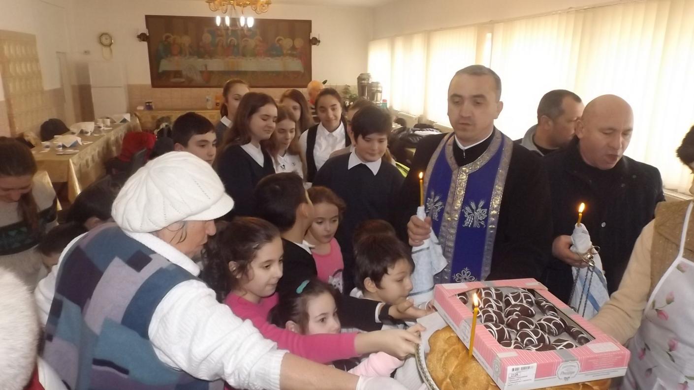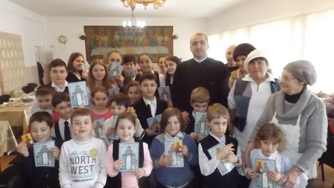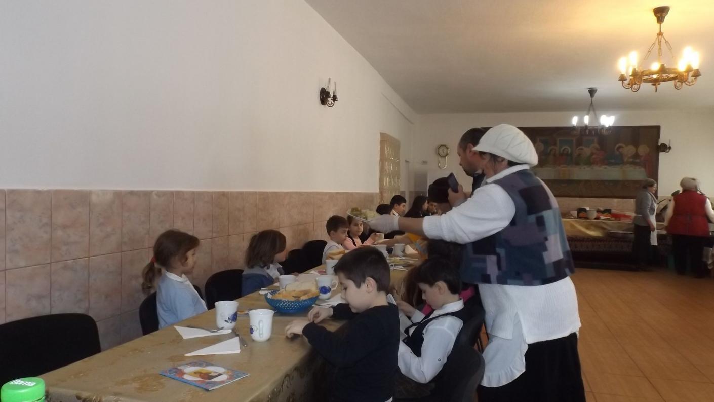 Totodată, copiii participă și la activitatea catehetică ce se desfășoară după servirea mesei prin prezența preoților delegați de părintele Protopop, cu binecuvântarea Înaltpreasfințitului Părinte Arhiepiscop Ioachim, activitate catehetică binevenită în această perioadă de urcuș duhovnicesc spre marea sărbătoare a Învierii Mântuitorului Iisus Hristos.