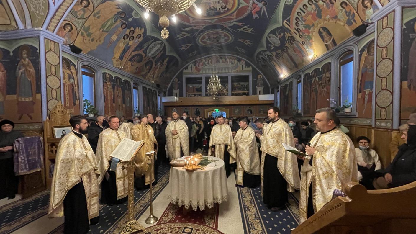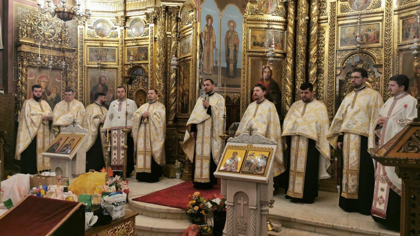 În aceeași zi, însă la ceas de seară, programul de rugăciune a continuat la Biserica „Sfinților Trei Ierarhi” din zona de Nord a municipiului Bacău. Și aici, părintele protoiereu s-a aflat în mijlocul comunității parohiale, care alături de alți 12 preoți a săvârșit Taina Sfântului Maslu, înfrumusețată de rugăciunile special alcătuite spre a fi rostite în vremuri grele, de război.
