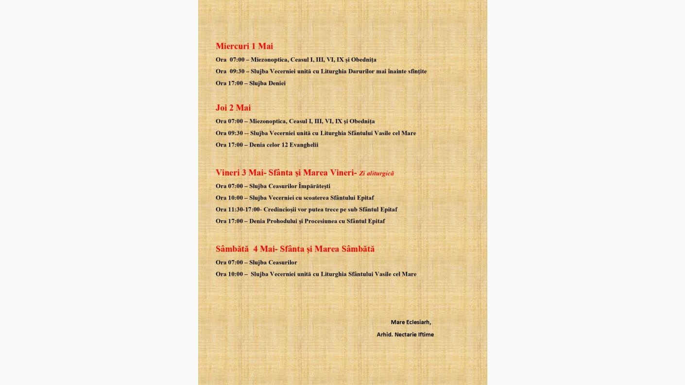 Sâmbătă 4 mai 2024 – Sfânta și Marea Sâmbătă