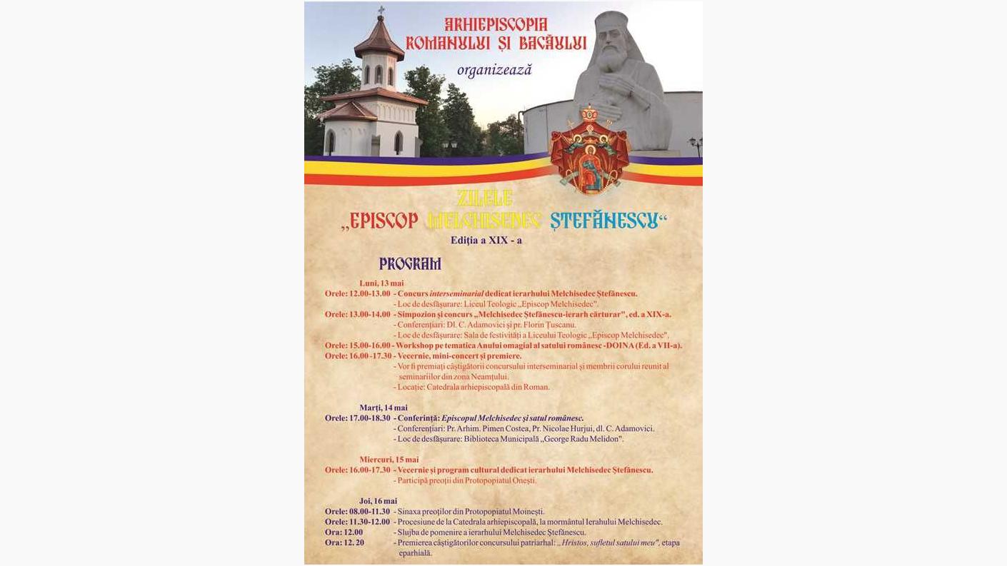 În perioada 13-16 mai a.c., cu binecuvântarea Înaltpreasfințitului Părinte Ioachim, Arhiepiscopul Romanului și Bacăului, Centrul eparhial de la Roman organizează cea de-a XIX-a ediție a Zilelor „Episcop Melchisedec Ștefănescu”, la împlinirea a 127 de ani de la nașterea în ceruri a marelui ierarh romașcan.