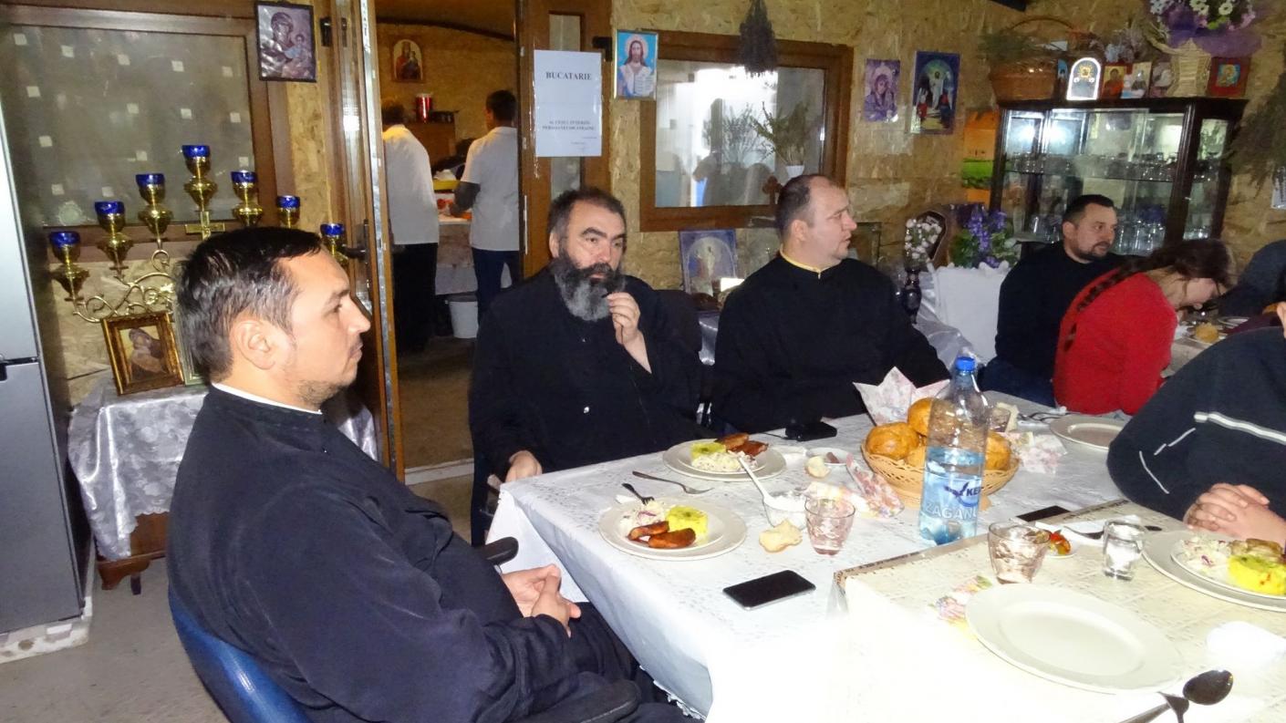 La sfârșitul slujbei, părintele paroh a prezentat câteva aspecte legate de implementarea prezentului program adresat persoanelor private de libertate și a apreciat dragostea și deschiderea enoriașilor față de această inițiativă a Sectorului Social-Filantropic al Arhiepiscopiei Romanului și Bacăului, evidențiind totodată râvna cu care aceștia s-au implicat în organizarea agapei creștine oferite invitaților.