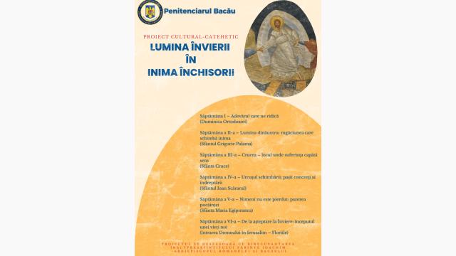Cu binecuvântarea Înaltpreasfințitului Părinte Ioachim, Arhiepiscopul Romanului și Bacăului, în această perioadă a Postului Mare se desfășoară, la Penitenciarul Bacău, proiectul cultural-catehetic „Lumina Învierii în inima închisorii”, dedicat persoanelor private de libertate.